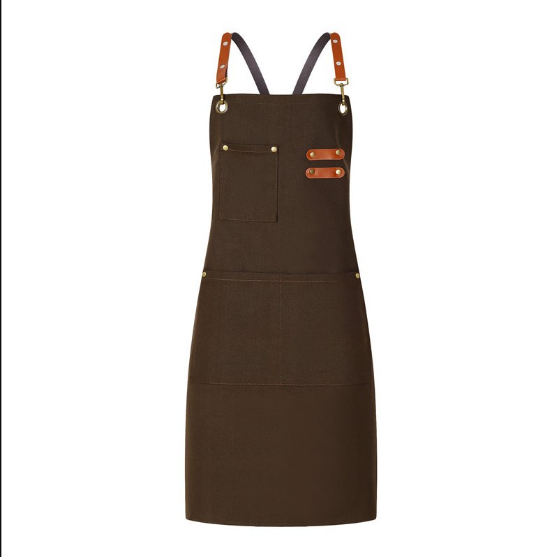 두꺼운 캔버스 앞치마 크로스 벨트 고급 앞치마 레스토랑 호텔 커피 숍 앞치마 인쇄 로고 대외 무역스토어 가기