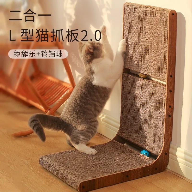 새로운 고양이 스크래치 보드 골판지 내마모성 L 형 수직 고양이 잔디 공 고양이 등반 프레임 클로 연삭 유물이 부스러기를 떨어 뜨리지 않습니다 고양이 놀이