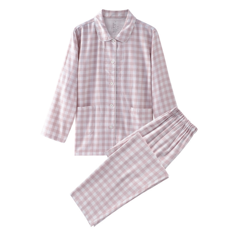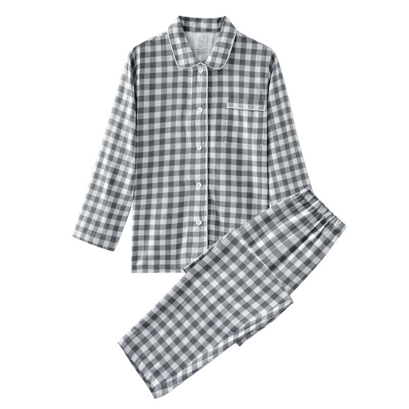일본식 무지 플란넬 홈웨어 고급 커플 잠옷 작은 격자무늬 순면 난퉁 벨벳 코튼 향기로운 격자무늬
