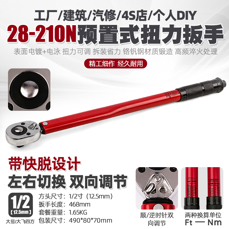 1/2 인치 프리셋 조정 가능한 토크 렌치 자동 수리 kg 빠른 래칫 토크 토크 렌치 도구 28-210N