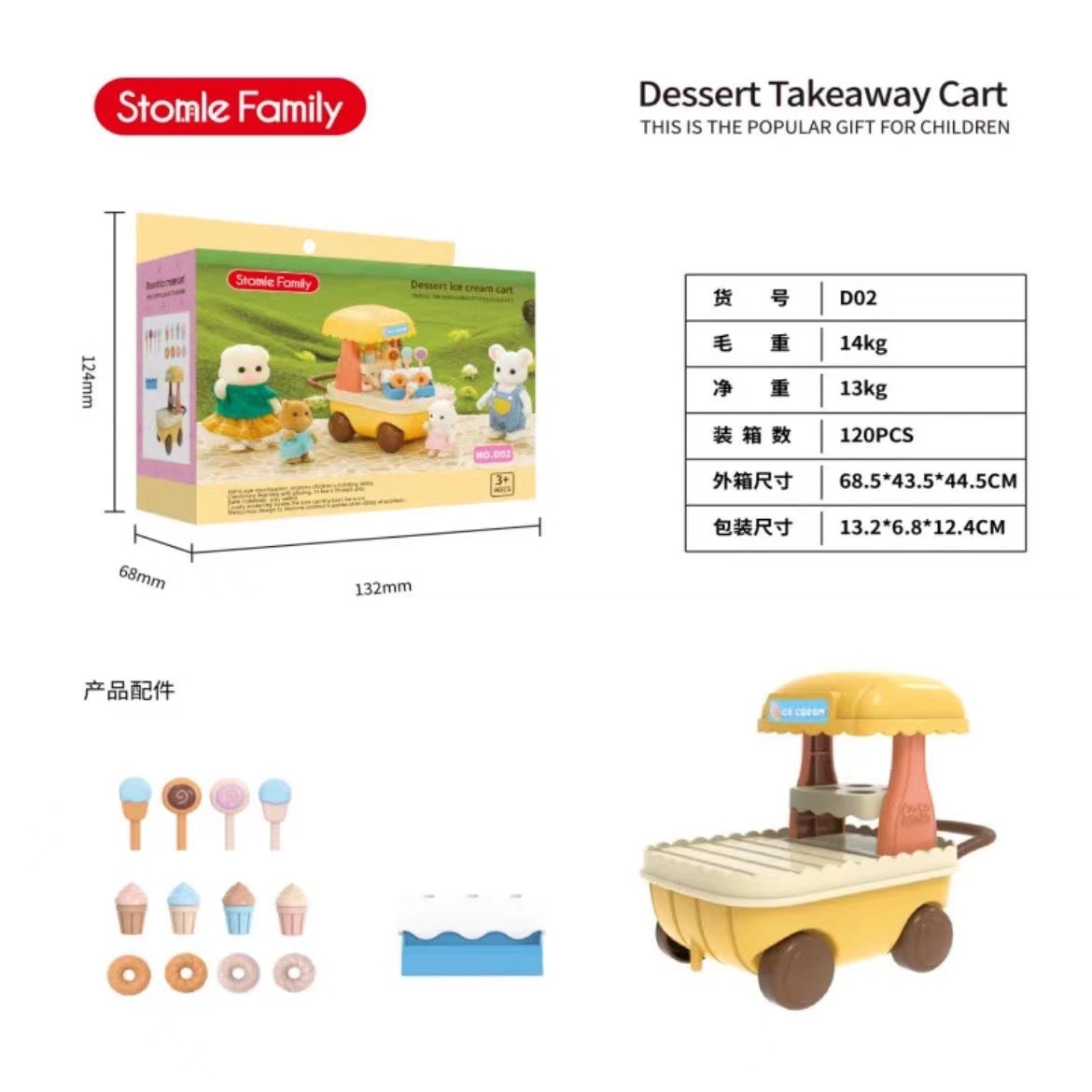 미니 트롤리 도넛 아이스크림 롤리팝 귀여운 시뮬레이션 모델 장난감 바퀴 움직일 수있는 생일 선물