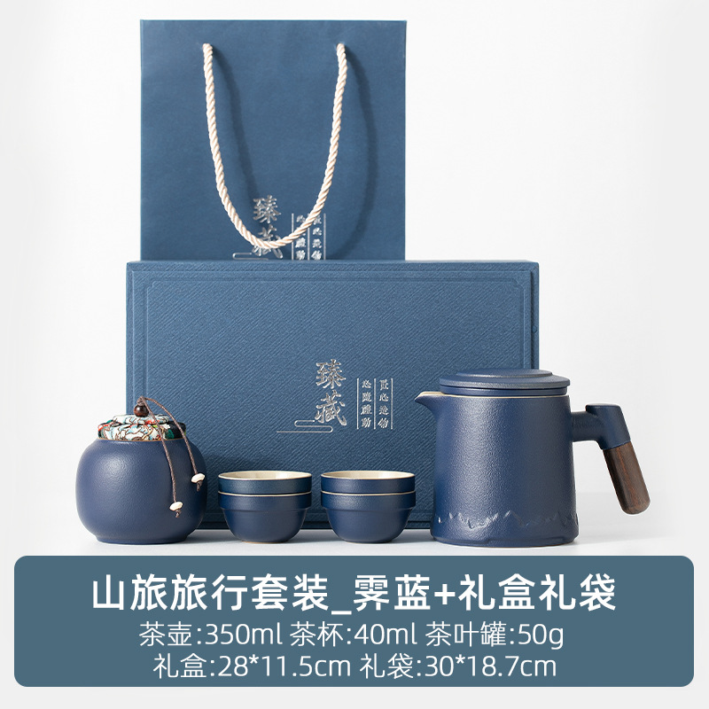 • 산단 4 컵 + 차 캔 + 파란색 가방 냄비-YaHei