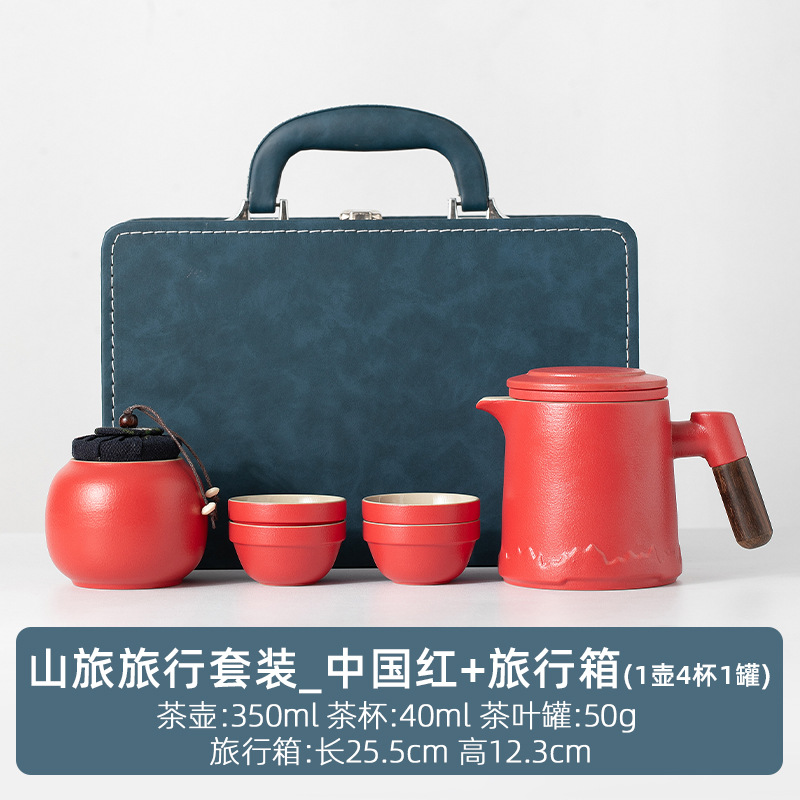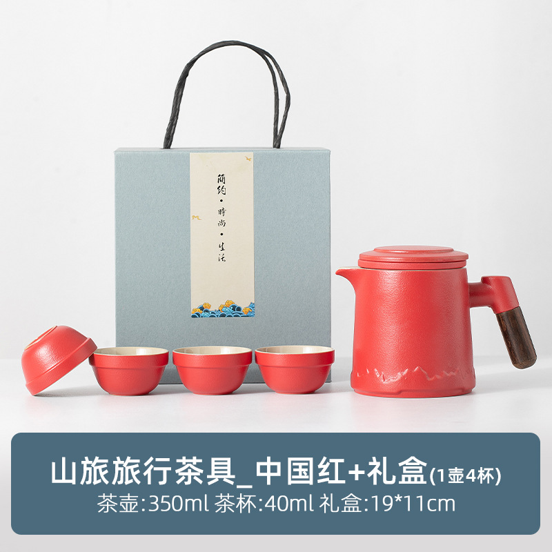 • 산 여단 4 컵 + 차 캔 + 비즈니스 가방 냄비-사이 홍