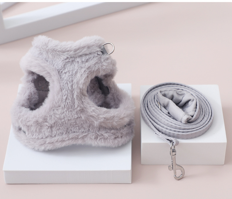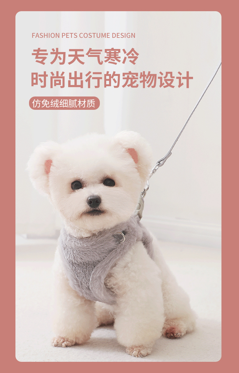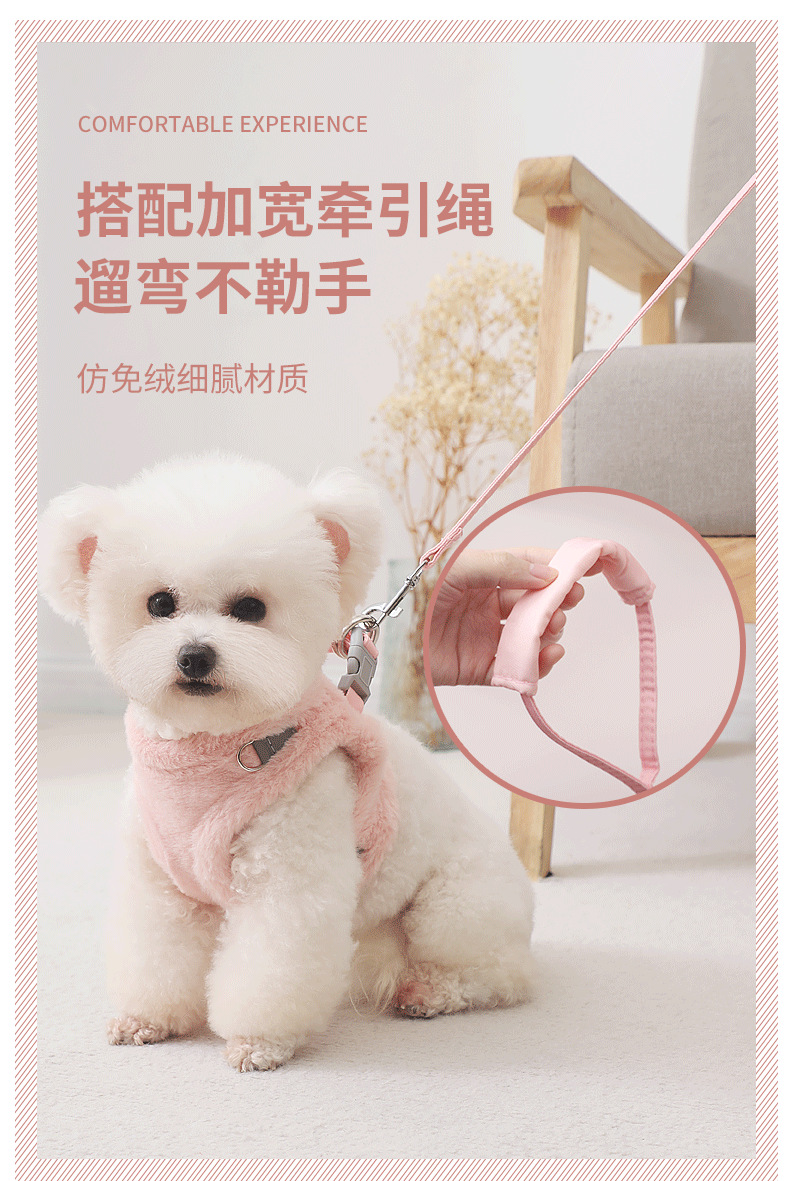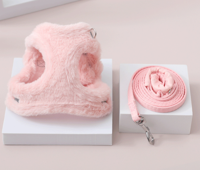 작은 개 가죽 끈 겨울 테디 플러시 따뜻한 개 가죽 끈 애완 동물 I 자형 조끼 가슴 끈