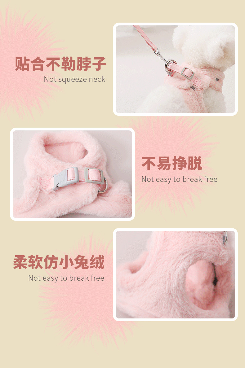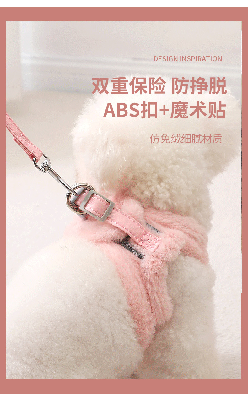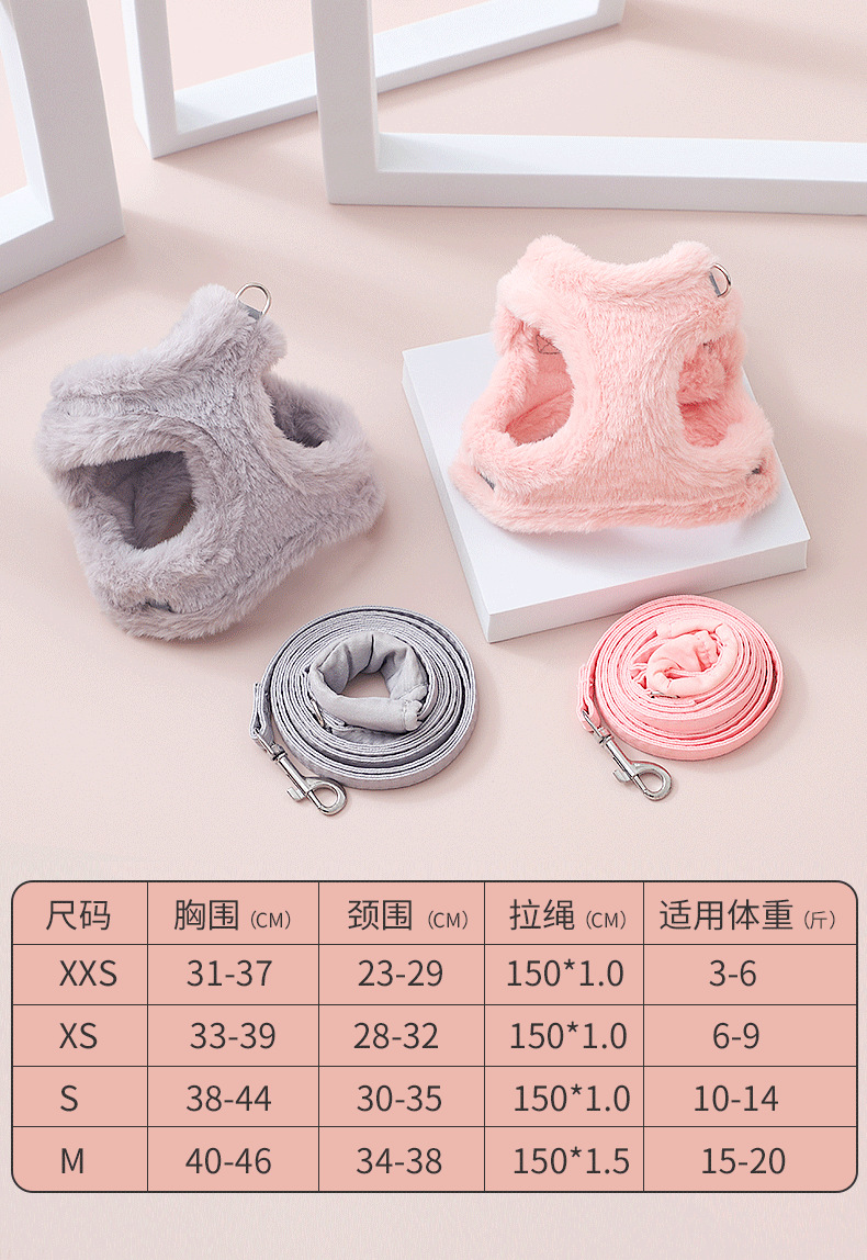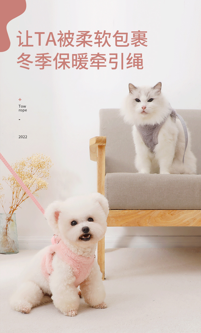 작은 개 가죽 끈 겨울 테디 플러시 따뜻한 개 가죽 끈 애완 동물 I 자형 조끼 가슴 끈