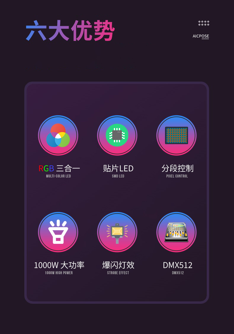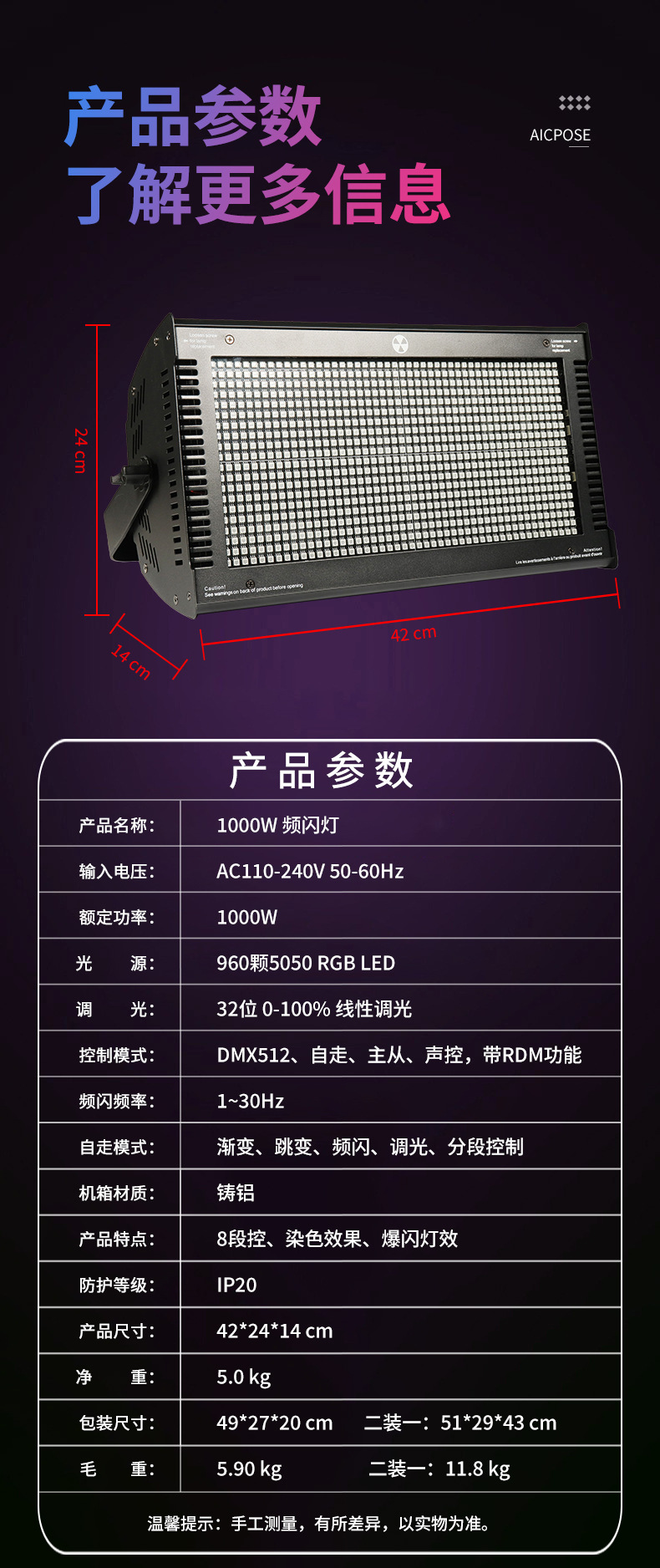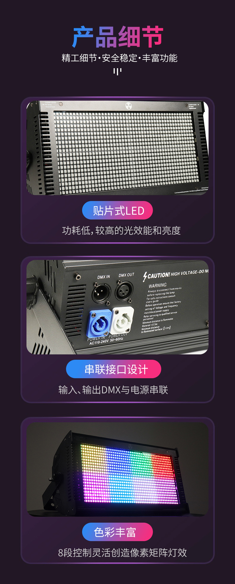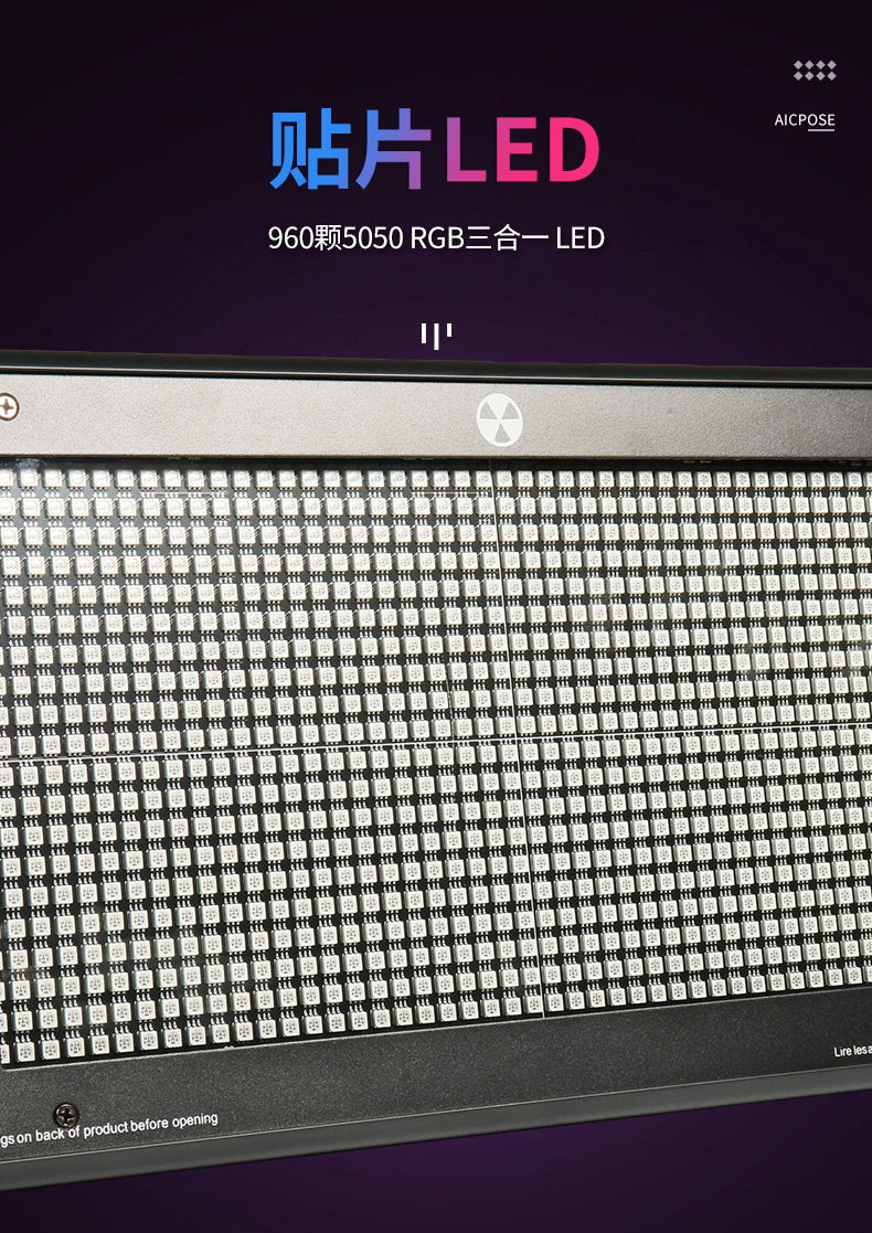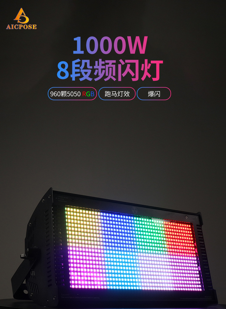 1000W 풀 컬러 쓰리 인 원 스트로브 라이트 4 세그먼트/8 세그먼트 하위 영역 단일 제어 스테이지 LED 버스트 스트로브 라이트