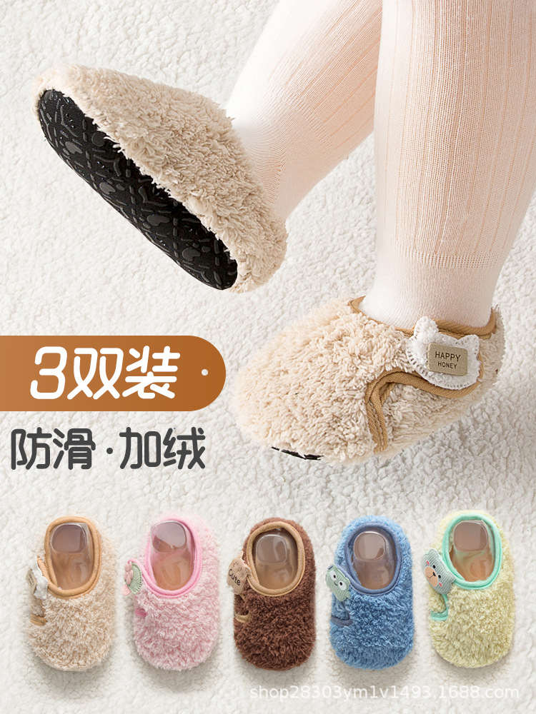 가을과 겨울 아기 바닥 양말 소년과 소녀와 기모 두꺼운 실내 유아 신발 양말 아기 멋진 미끄럼 방지 드롭
