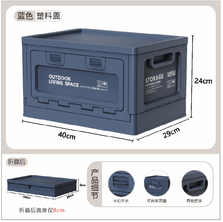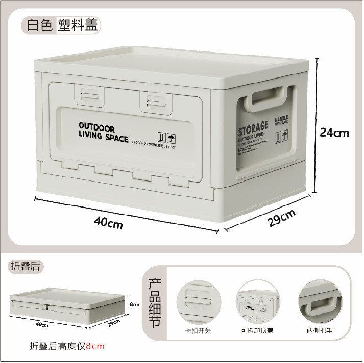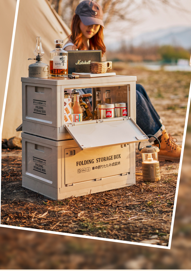 엄선된 캠핑용 나무 덮개 접이식 박스 야외 캠핑 수납 박스 측면 개폐형 차량 트렁크 수납 박스스토어 가기