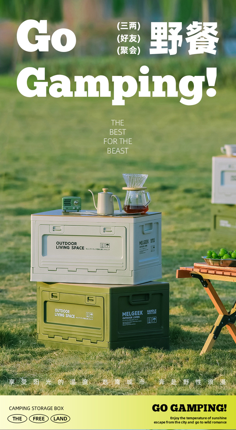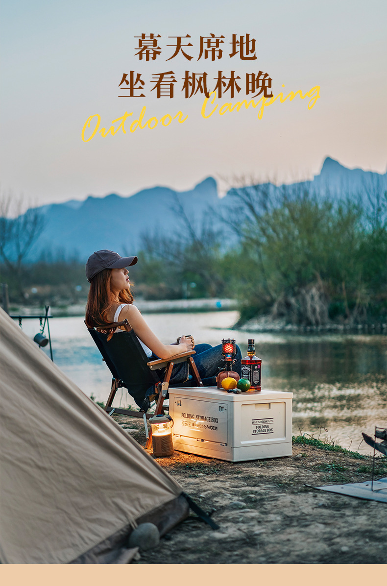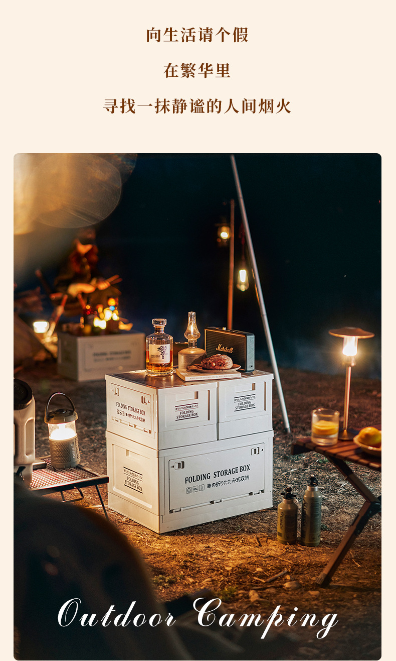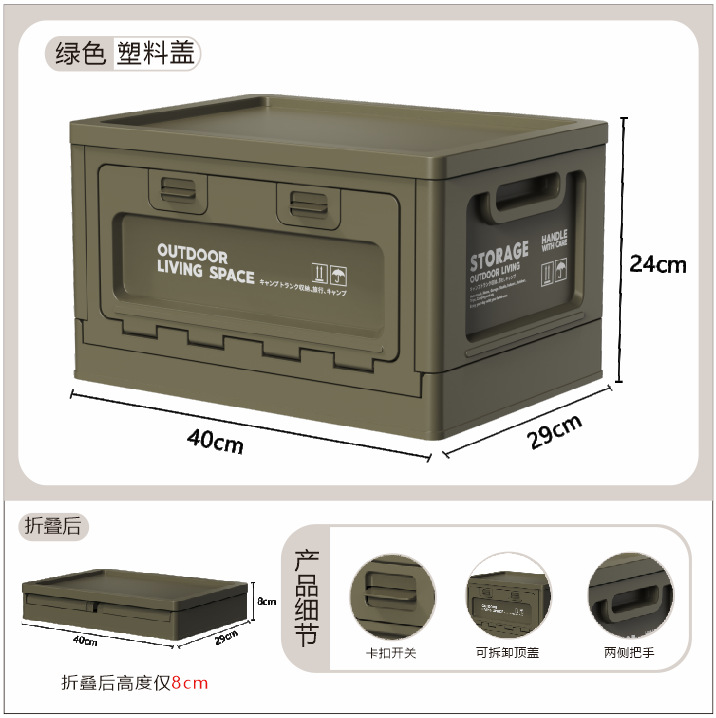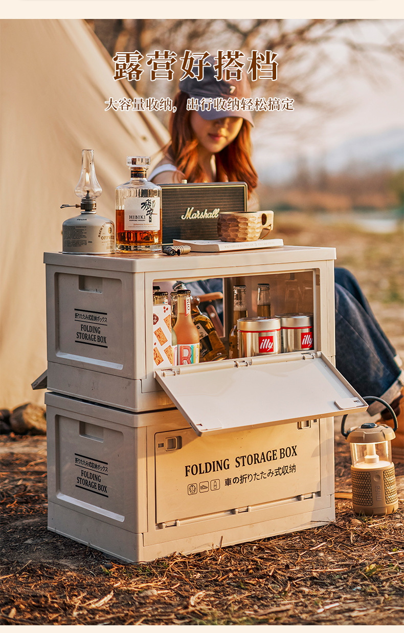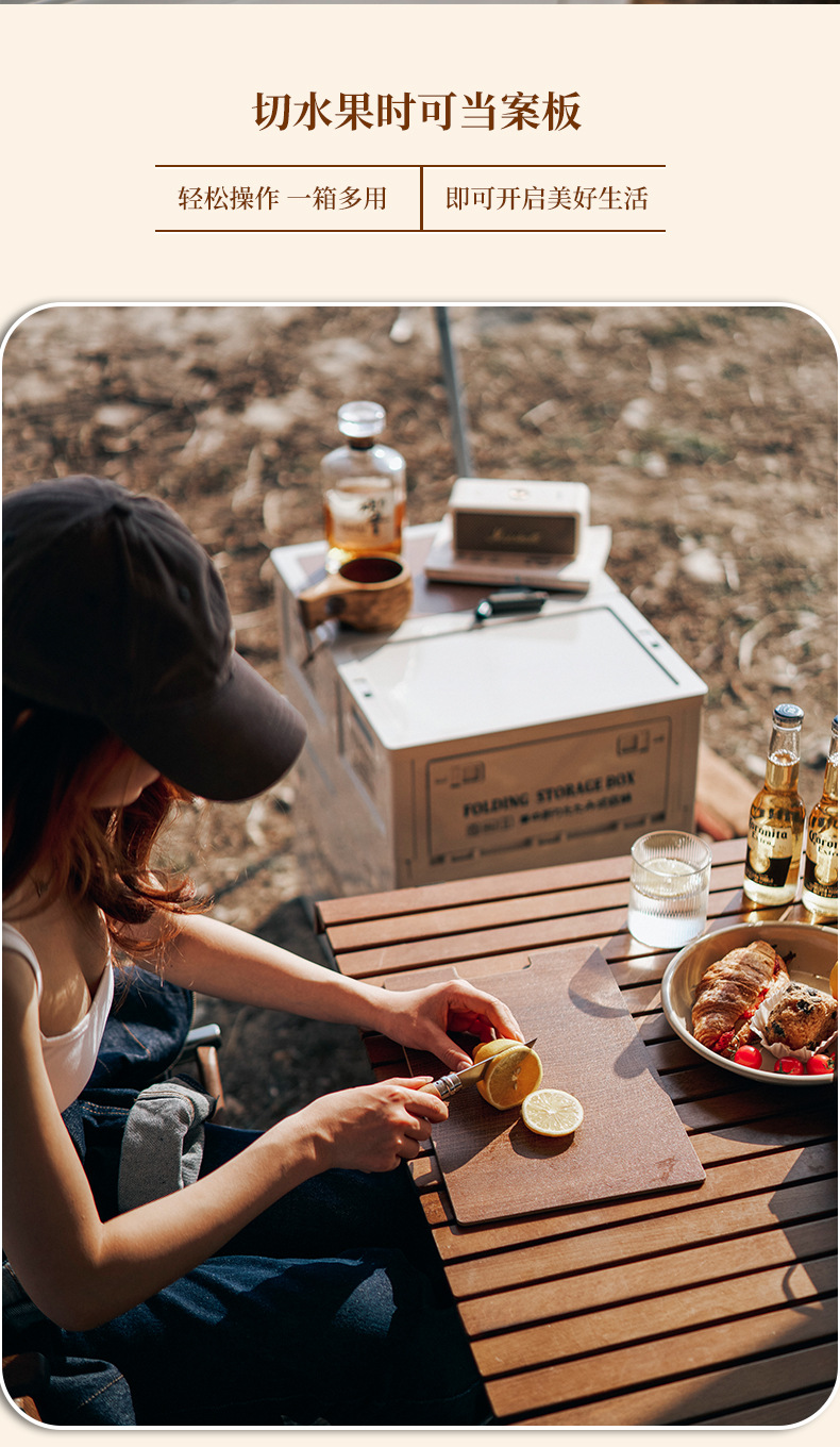엄선된 캠핑용 나무 덮개 접이식 박스 야외 캠핑 수납 박스 측면 개폐형 차량 트렁크 수납 박스