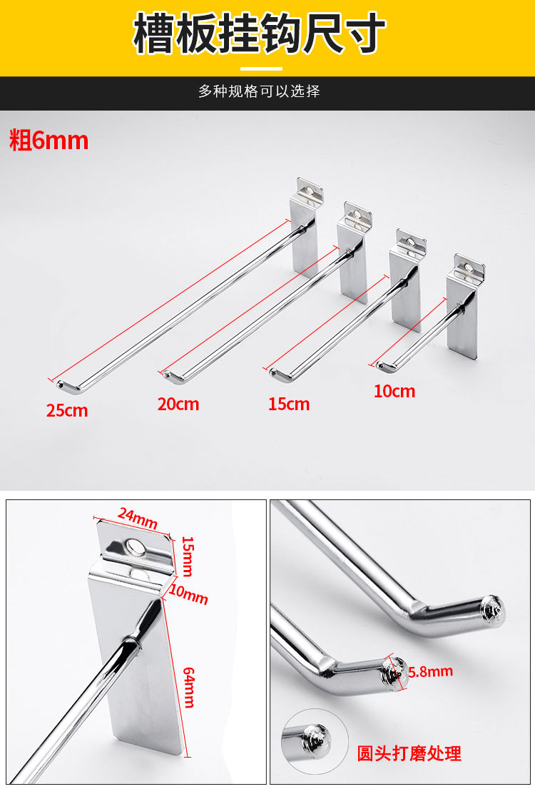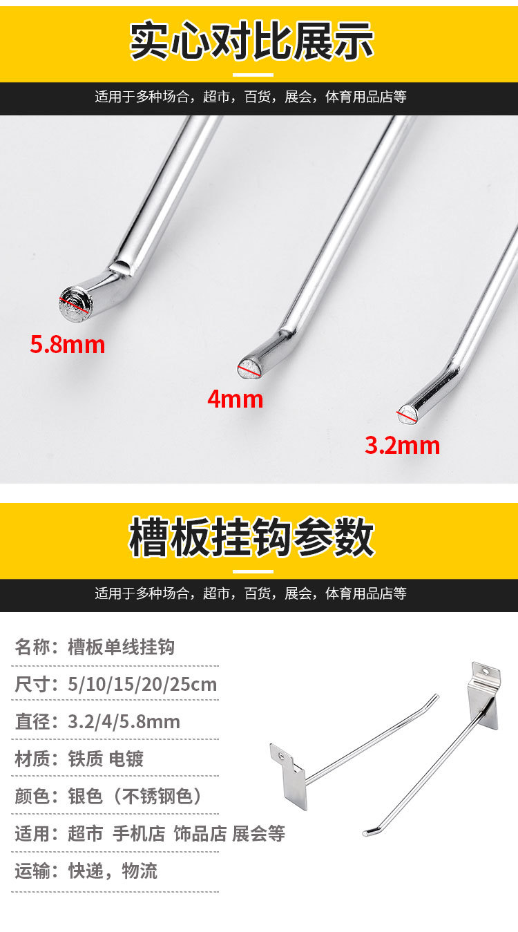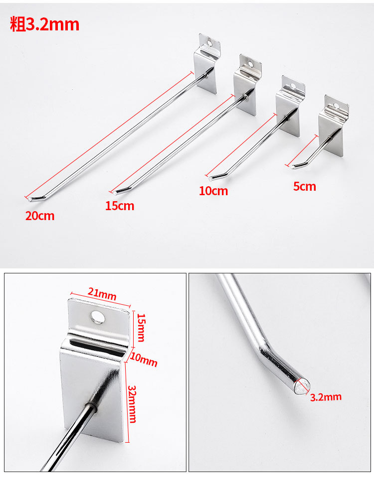 • 4mm 두께의 슬롯 플레이트 후크 20cm (50 팩) 중간 두께 (상점 주인 추천