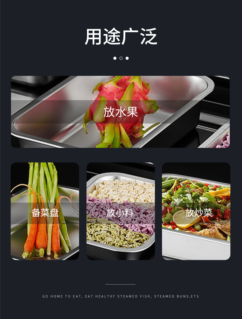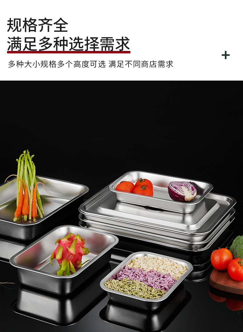 스테인레스 스틸 분지 직사각형 플레이트 부분 분지 평면 바닥 사각 분지 깊은 트레이 패스트 푸드 뚜껑이있는 야채 분지 사각 상자스토어 가기
