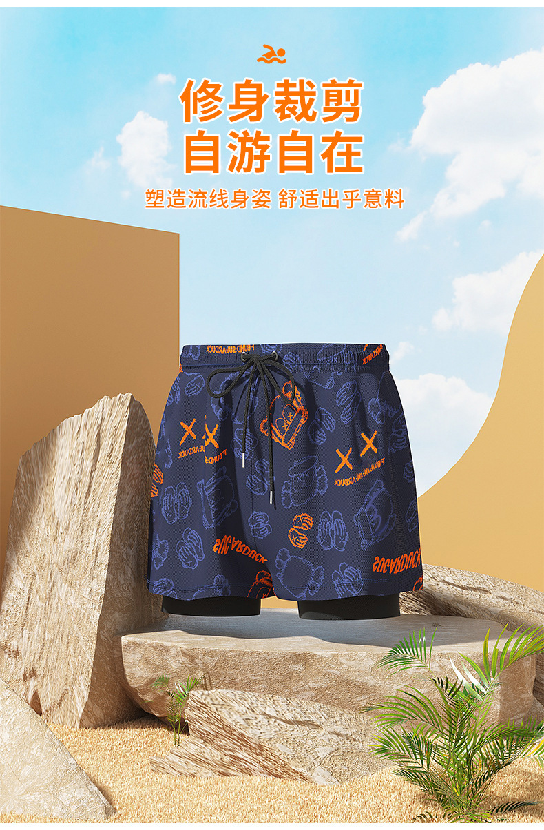 수영복 남성용 전문 당황 방지 플러스 사이즈 느슨한 더블 레이어 수영 트렁크 자외선 차단제 온천 전신 남성용 수영복 세트스토어 가기