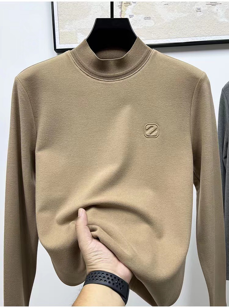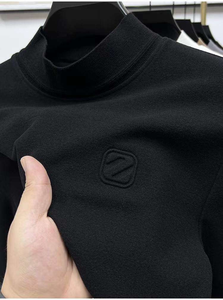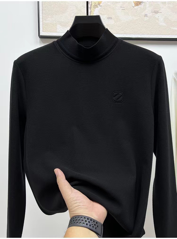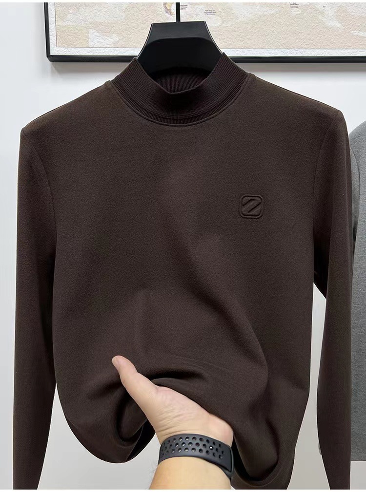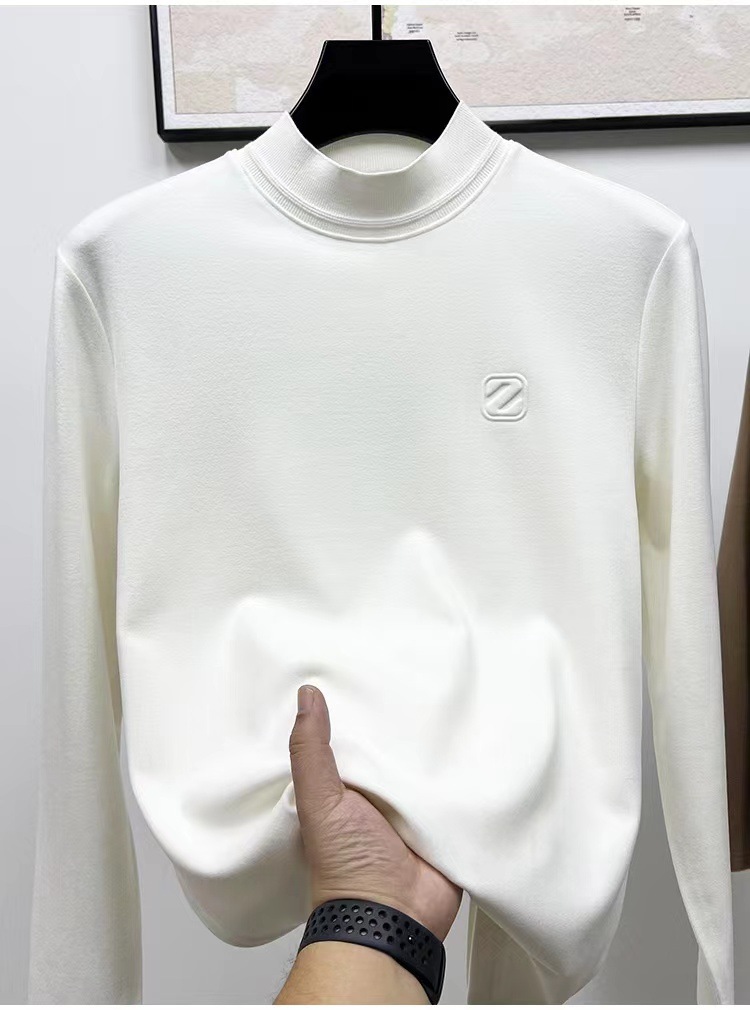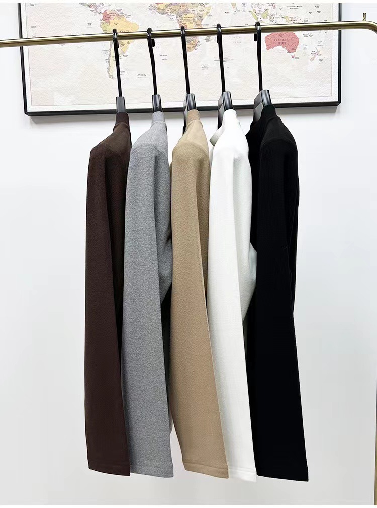 라이트 럭셔리 하이 엔드 레이어 벨벳 티셔츠 가을과 겨울 남성용 하프 하이 칼라 양면 벨벳베이스 셔츠 남성용 슬림핏 내부 스몰 셔츠