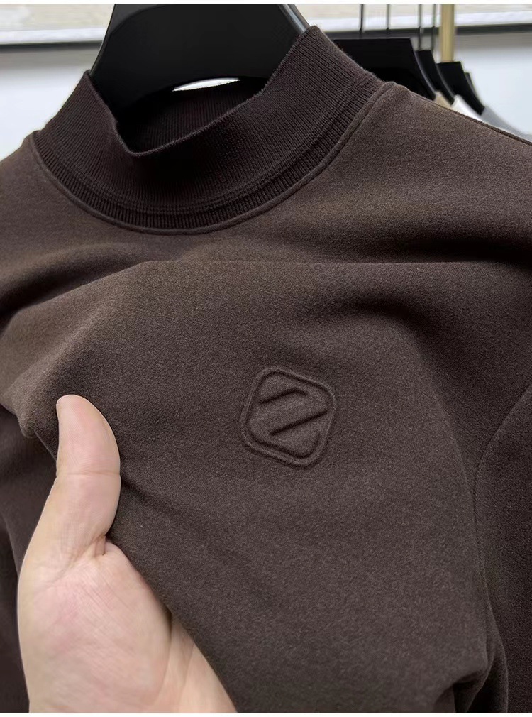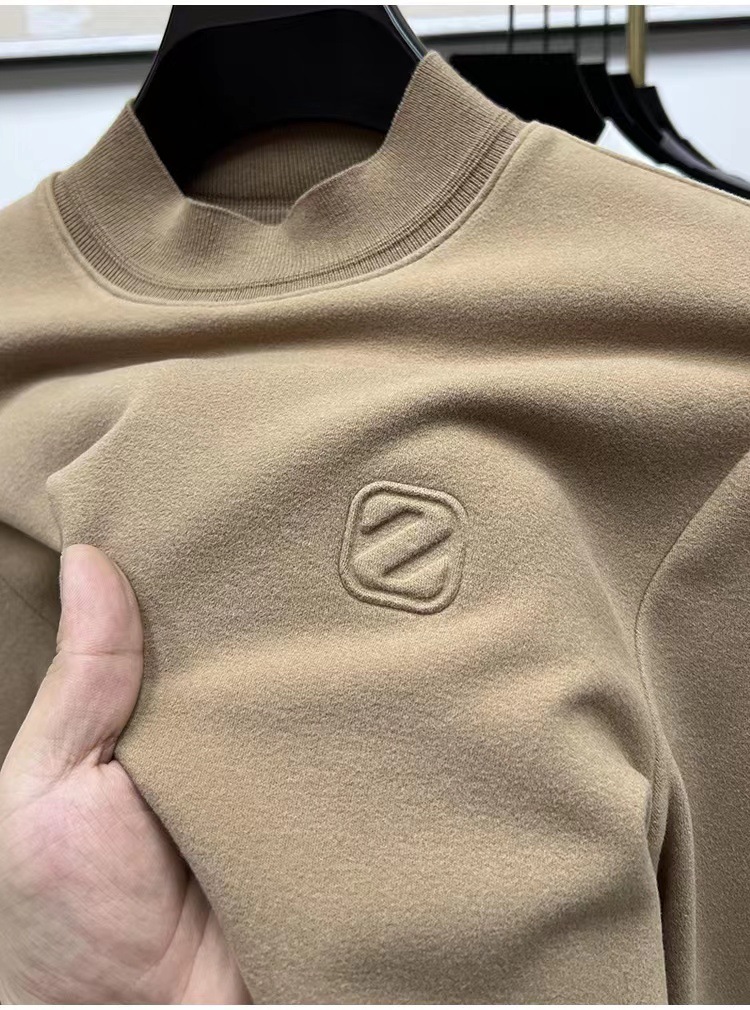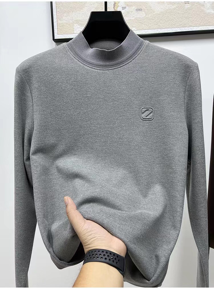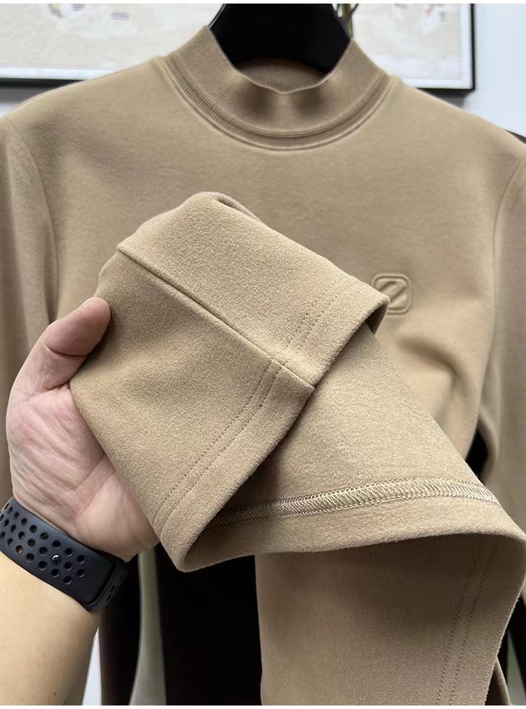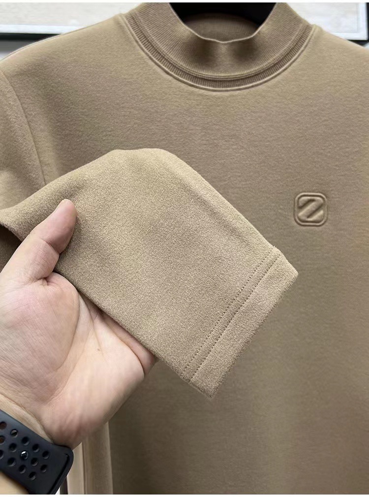 라이트 럭셔리 하이 엔드 레이어 벨벳 티셔츠 가을과 겨울 남성용 하프 하이 칼라 양면 벨벳베이스 셔츠 남성용 슬림핏 내부 스몰 셔츠