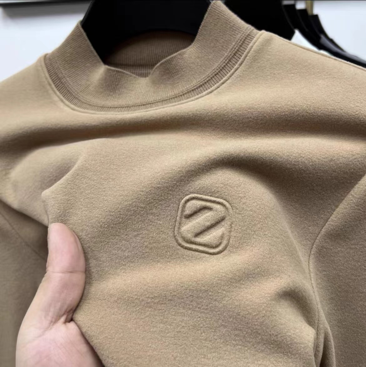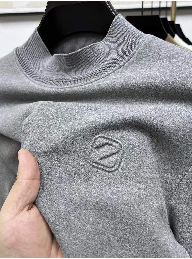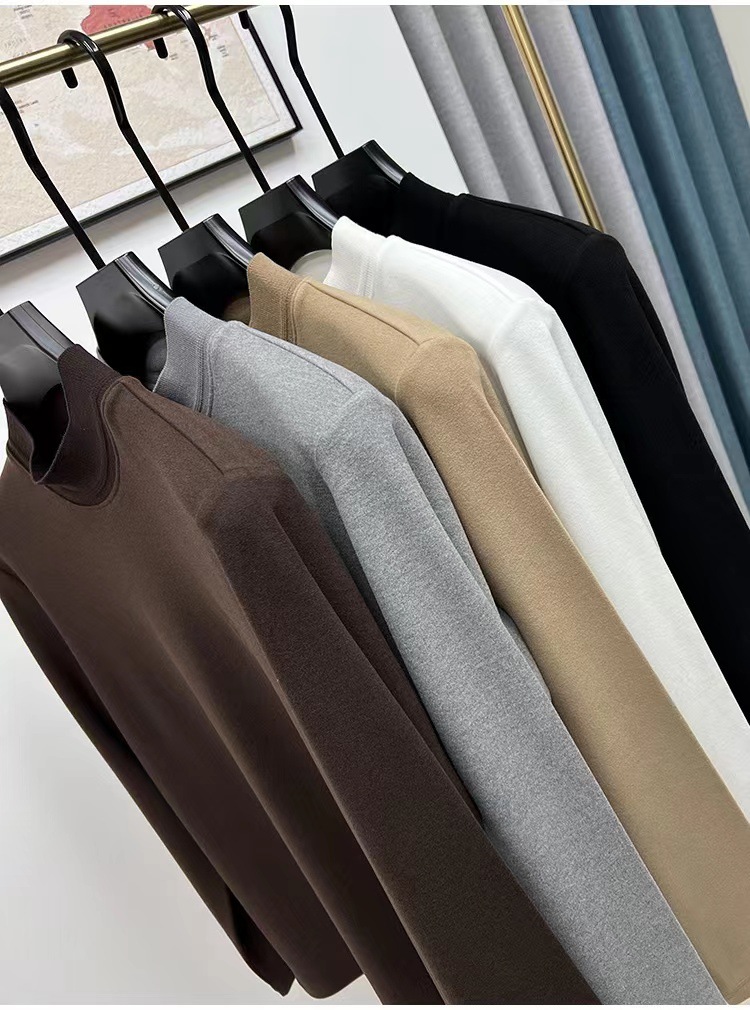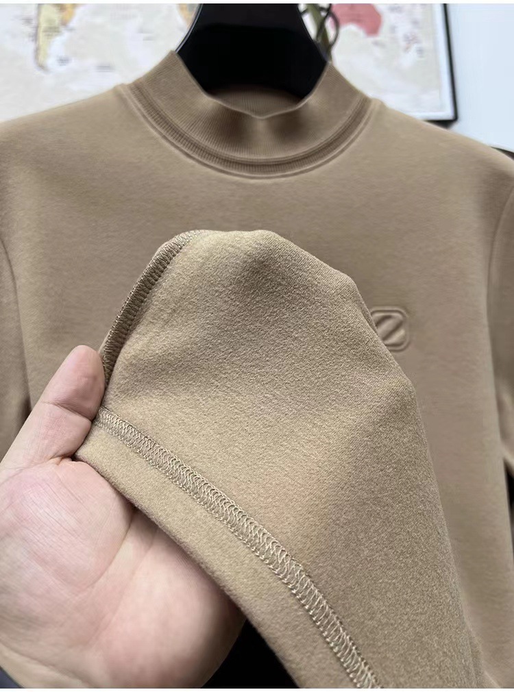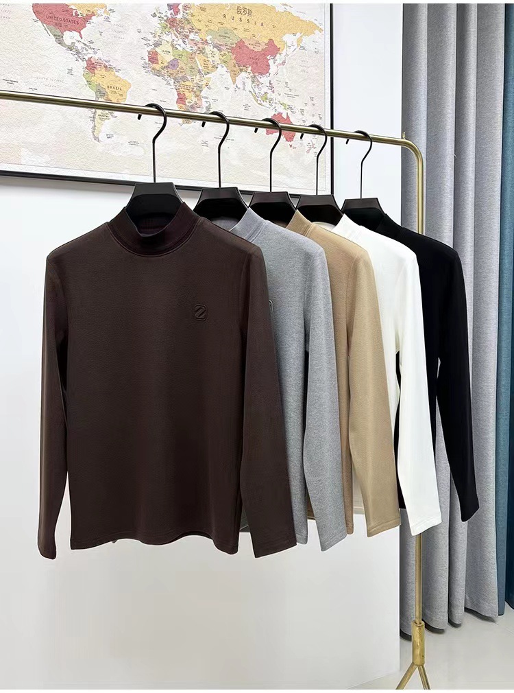 라이트 럭셔리 하이 엔드 레이어 벨벳 티셔츠 가을과 겨울 남성용 하프 하이 칼라 양면 벨벳베이스 셔츠 남성용 슬림핏 내부 스몰 셔츠