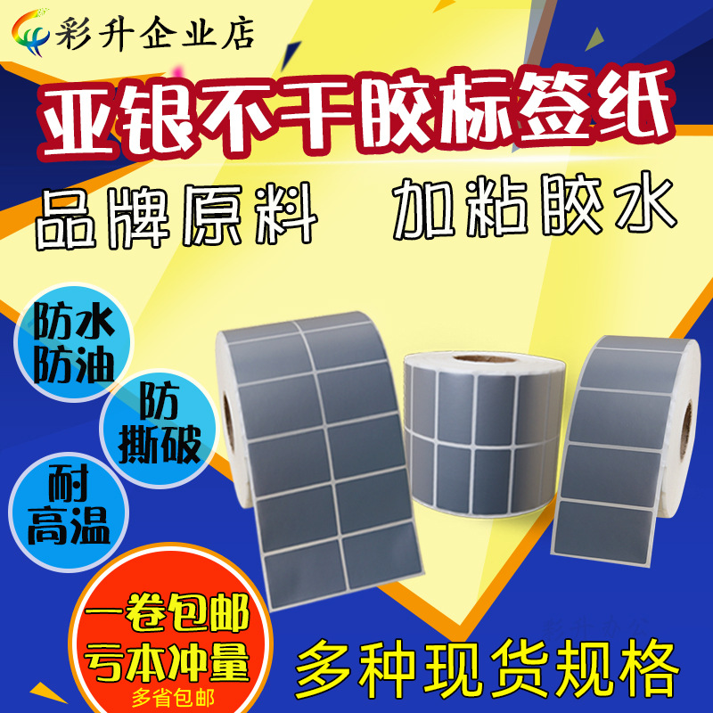 50*40*35*30x25*20*10*32x19 멍청한 실버 라벨 용지 실버 바코드 용지 방수 PE 인쇄 스티커스토어 가기