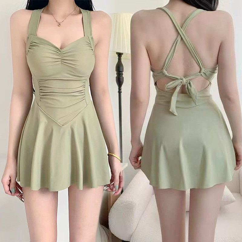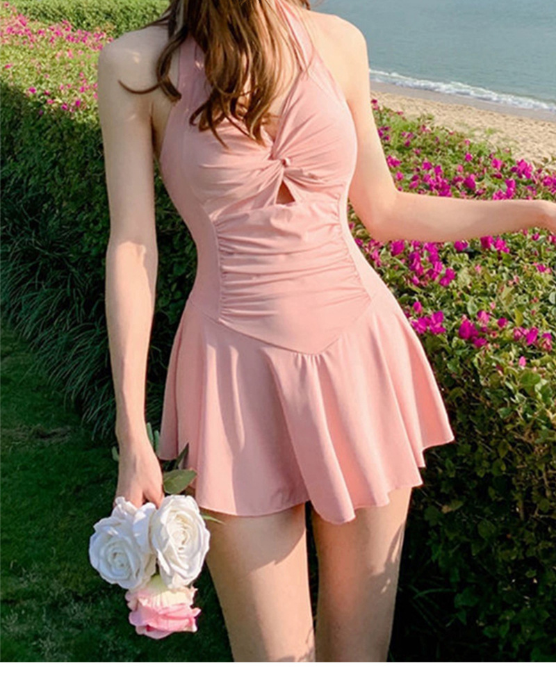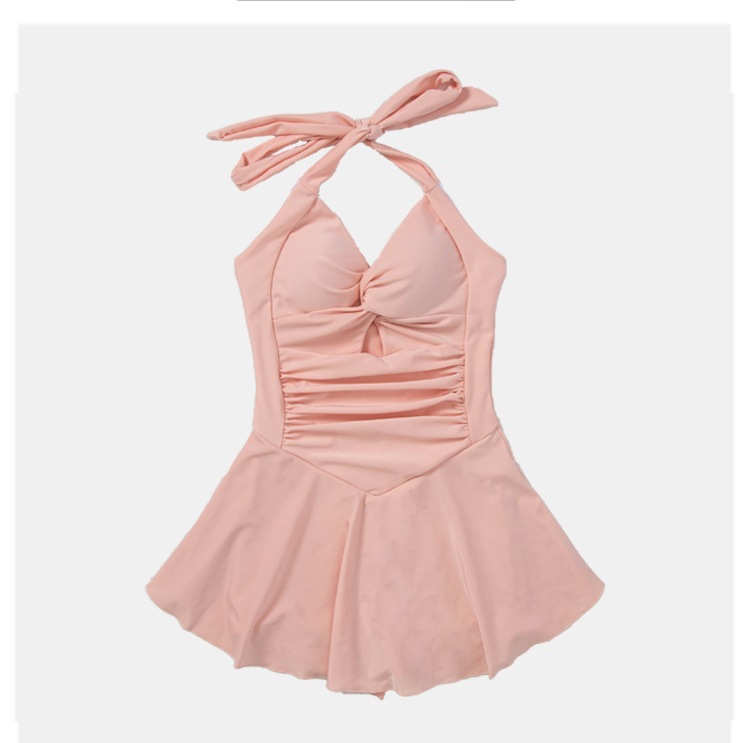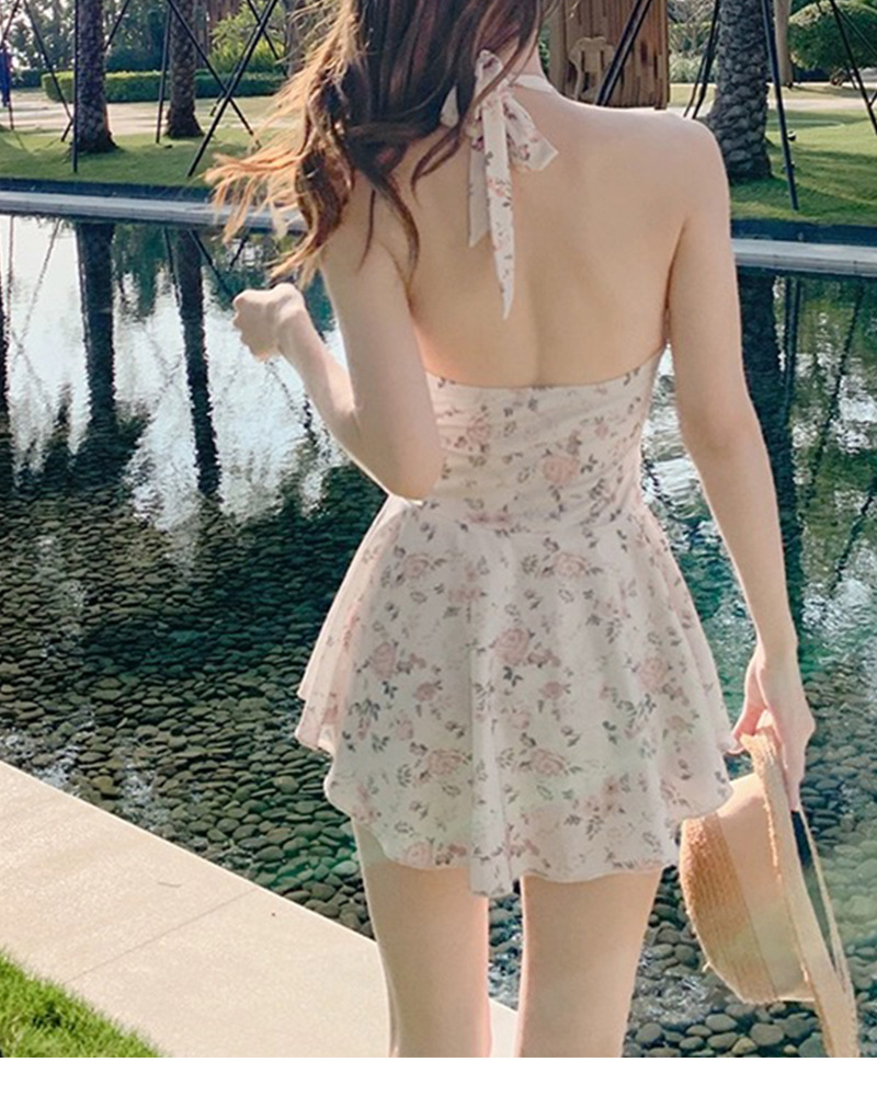 원피스 수영복 여성용 홀터넥 백리스 소형 신선한 꽃 수영복 프랑스 도매 슬림핏 수영복 온천