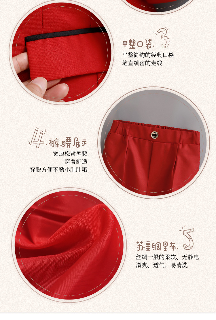 • 레드 4 종 세트 (재킷 + 바지 + Y6Y7 나비 넥타이 + 핑크 튤립 코사지)