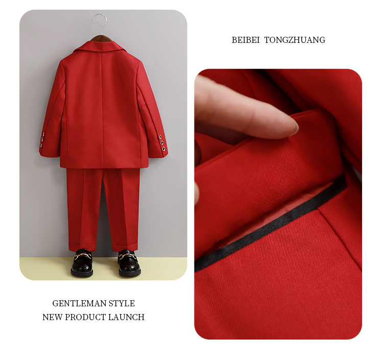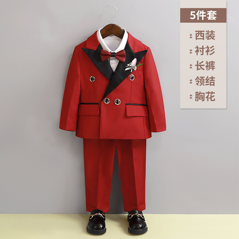 • 레드 5 종 세트 (재킷 + 바지 + 셔츠 + Y6Y7 나비 넥타이 + 핑크 튤립 코사지)