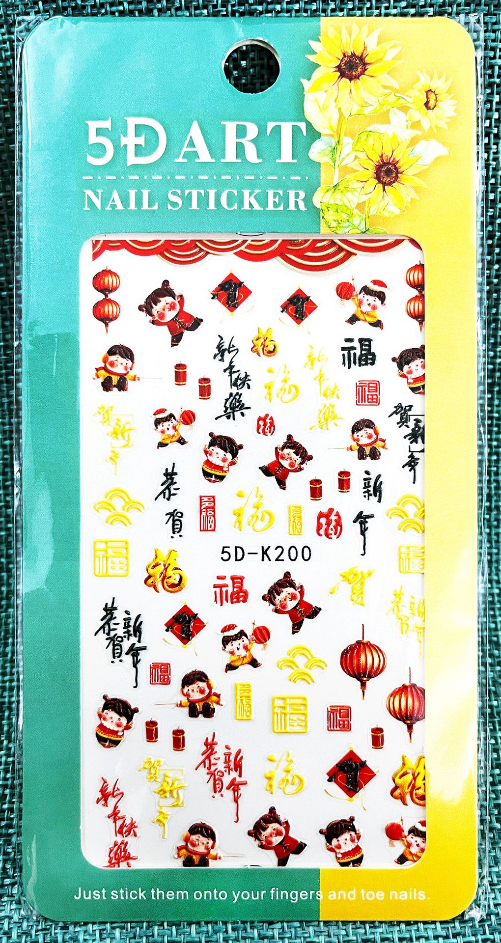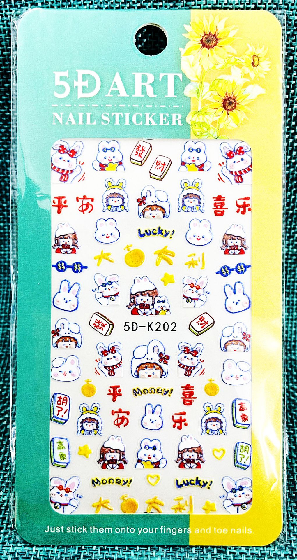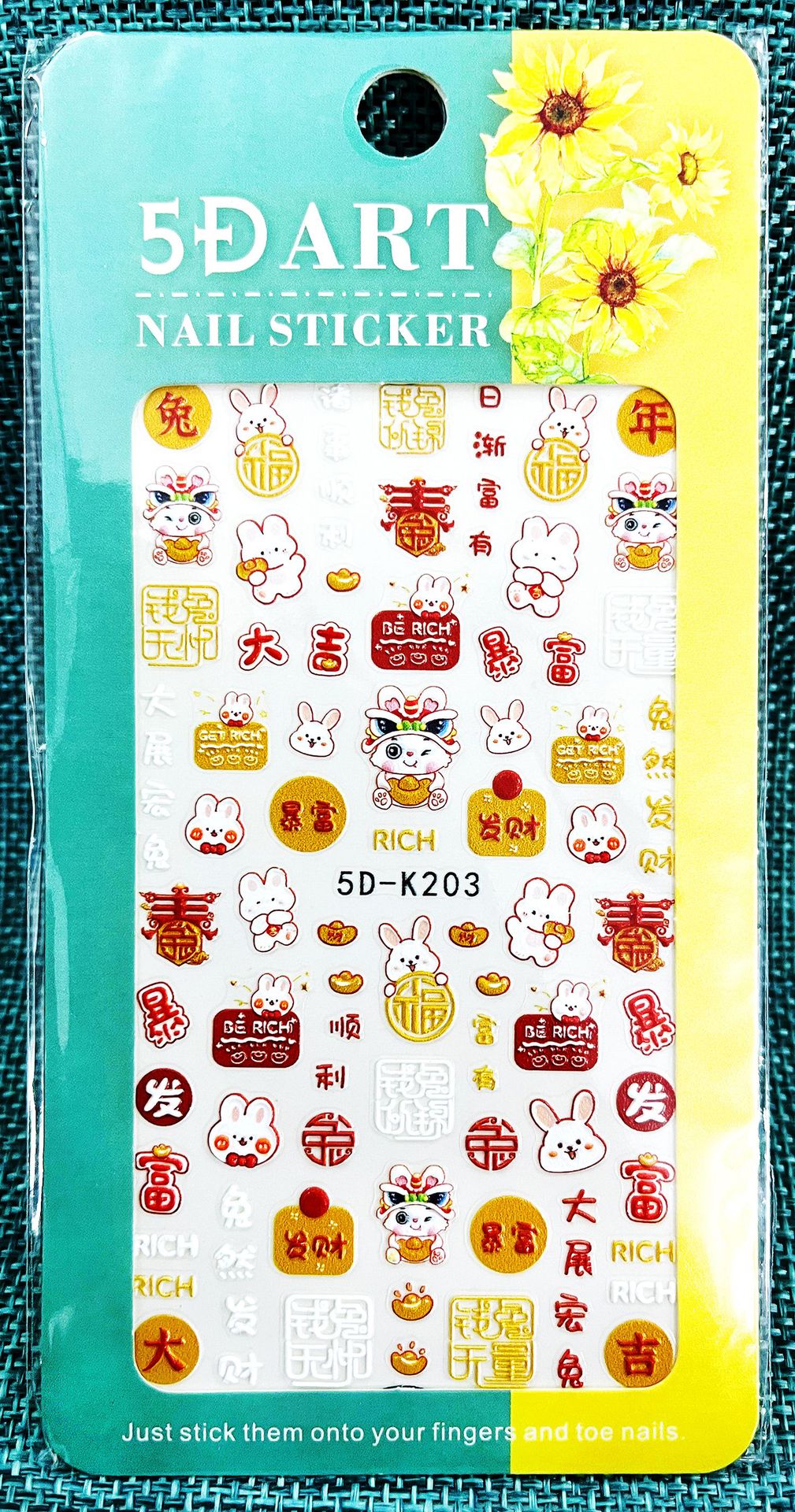 2023 네일 아트 스티커 토끼의 새해 봄 새해 스테레오 릴리프 5D-K200-203 사자 댄스 귀여운 토끼