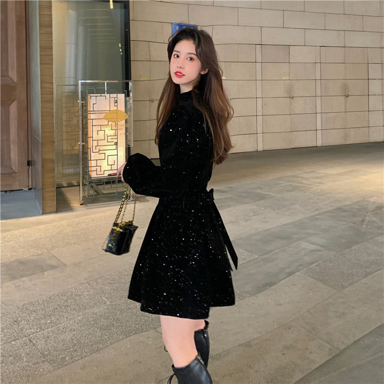 크리스마스 레드 연례 회의 자매 벨벳 원피스 가을과 겨울 새로운 기질 주의 기계 디자인 감각 원피스 여성의 원피스스토어 가기