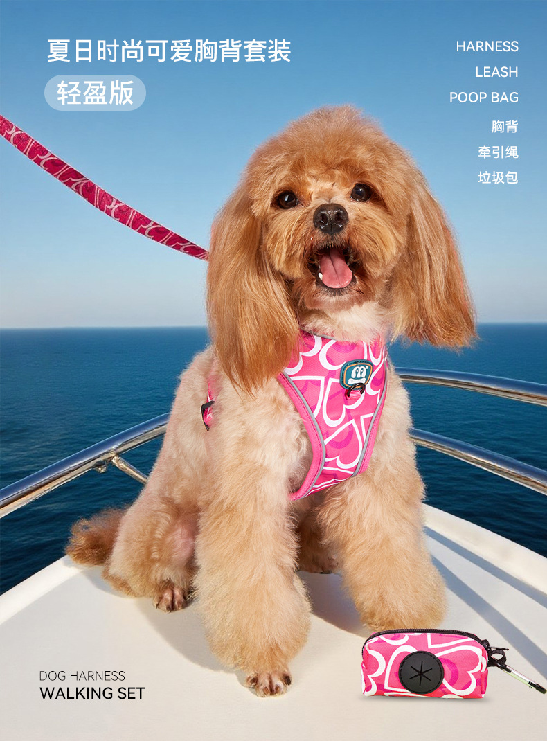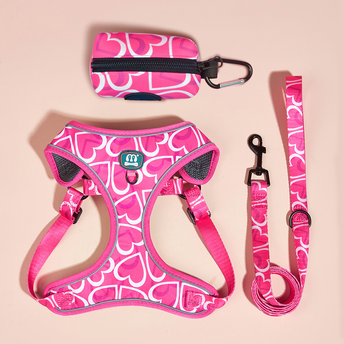 국경을 넘는 BSCI 공장에서 생산된 반려견 및 고양이용 패션 리드줄 및 하네스 세트, 반사 스트립 포함, 조절 가능한 강아지 하네스스토어 가기