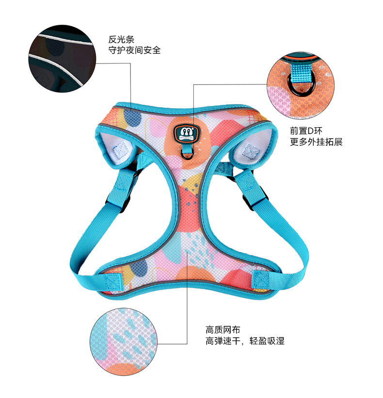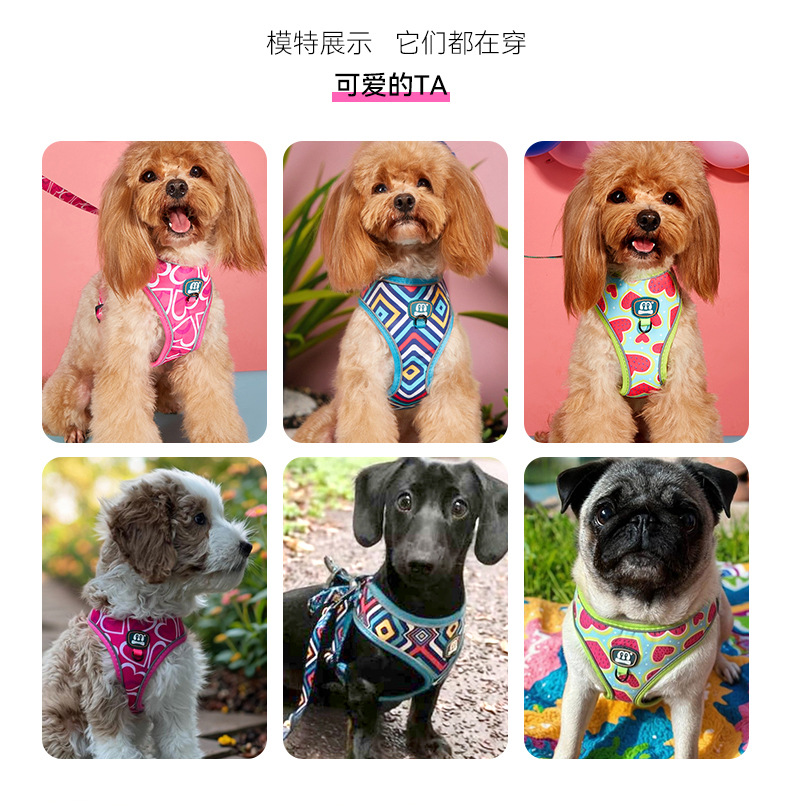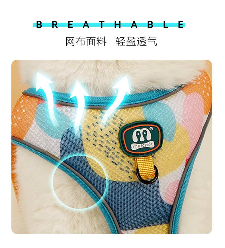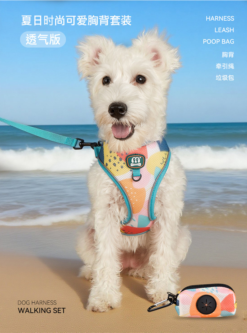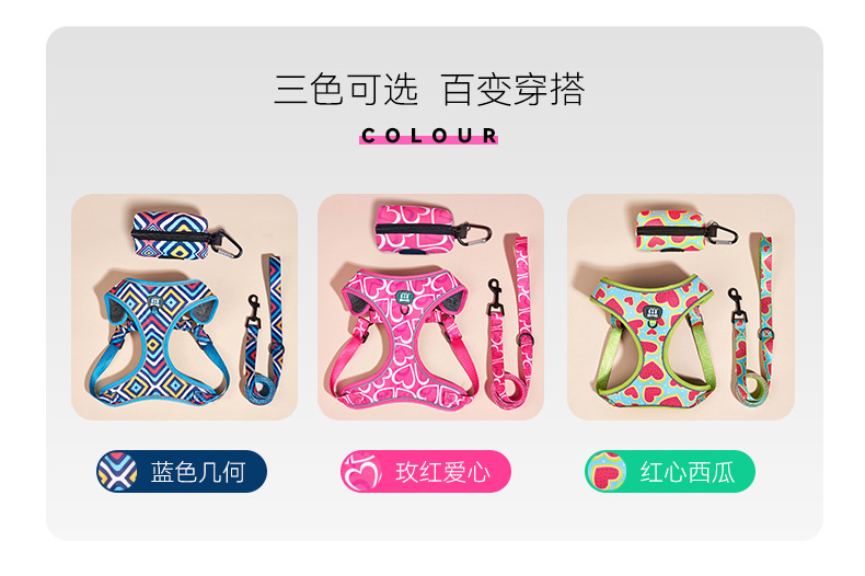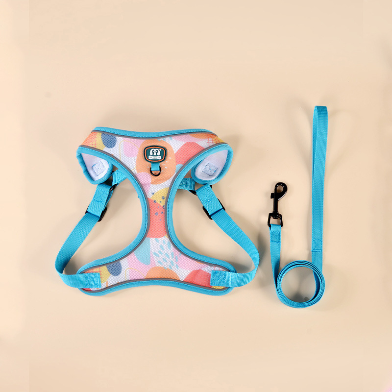 • 기하학적 컬러 블록 - 가슴 하네스 + 리드줄