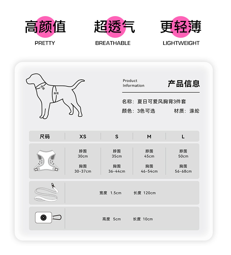 • 다색 랜덤 - 가슴 하네스 + 리드줄