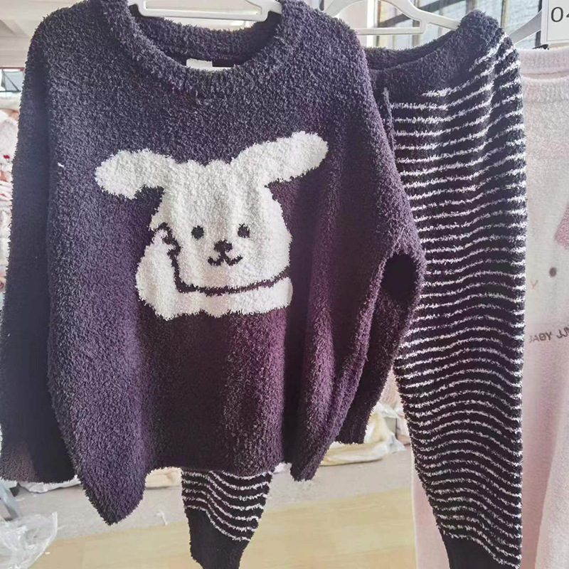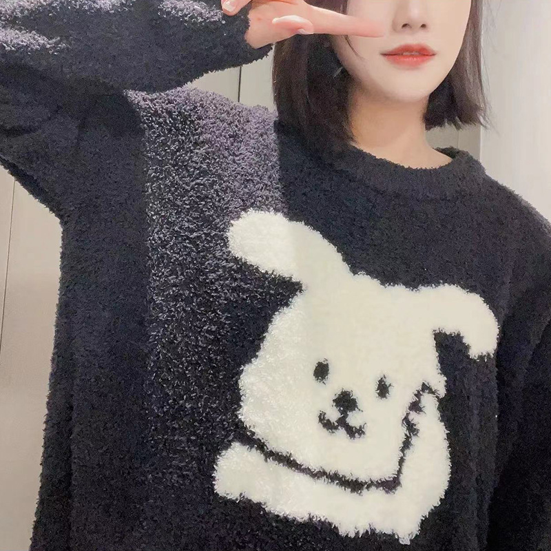 가을과 겨울 잠옷 여자의 부드러운 토끼 달콤한 두꺼운 봉제 풀오버 따뜻한 반 벨벳 느슨한 가정 옷