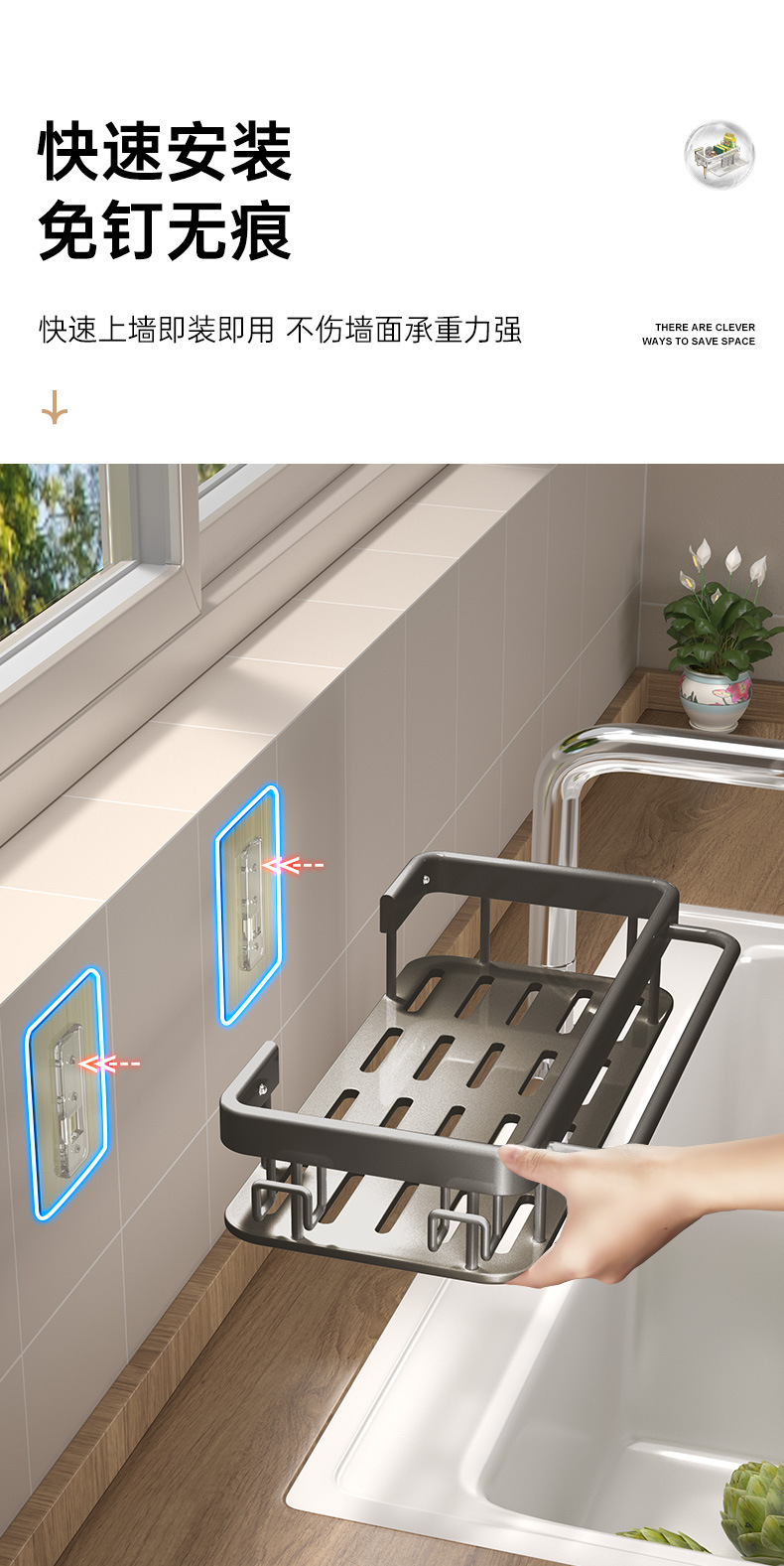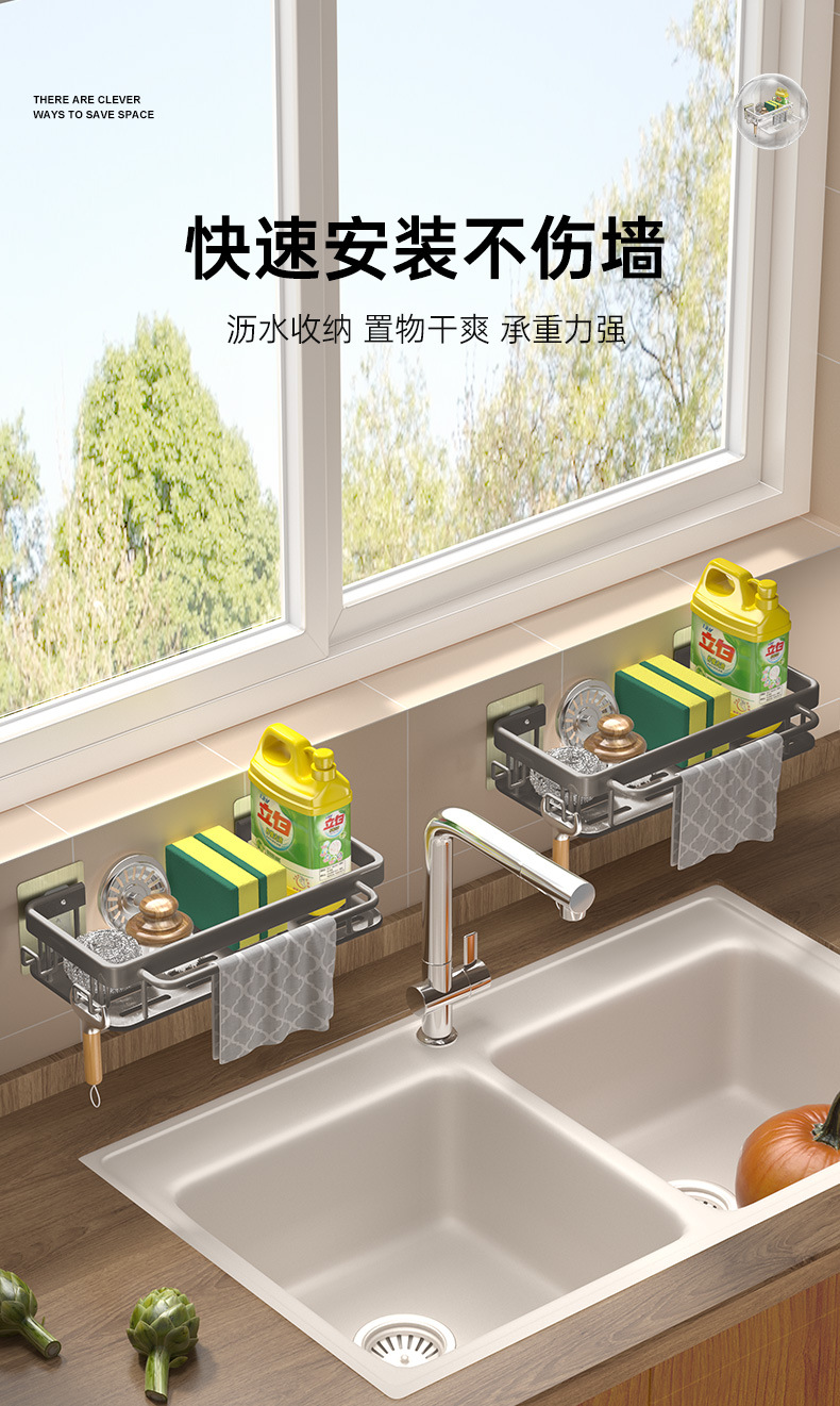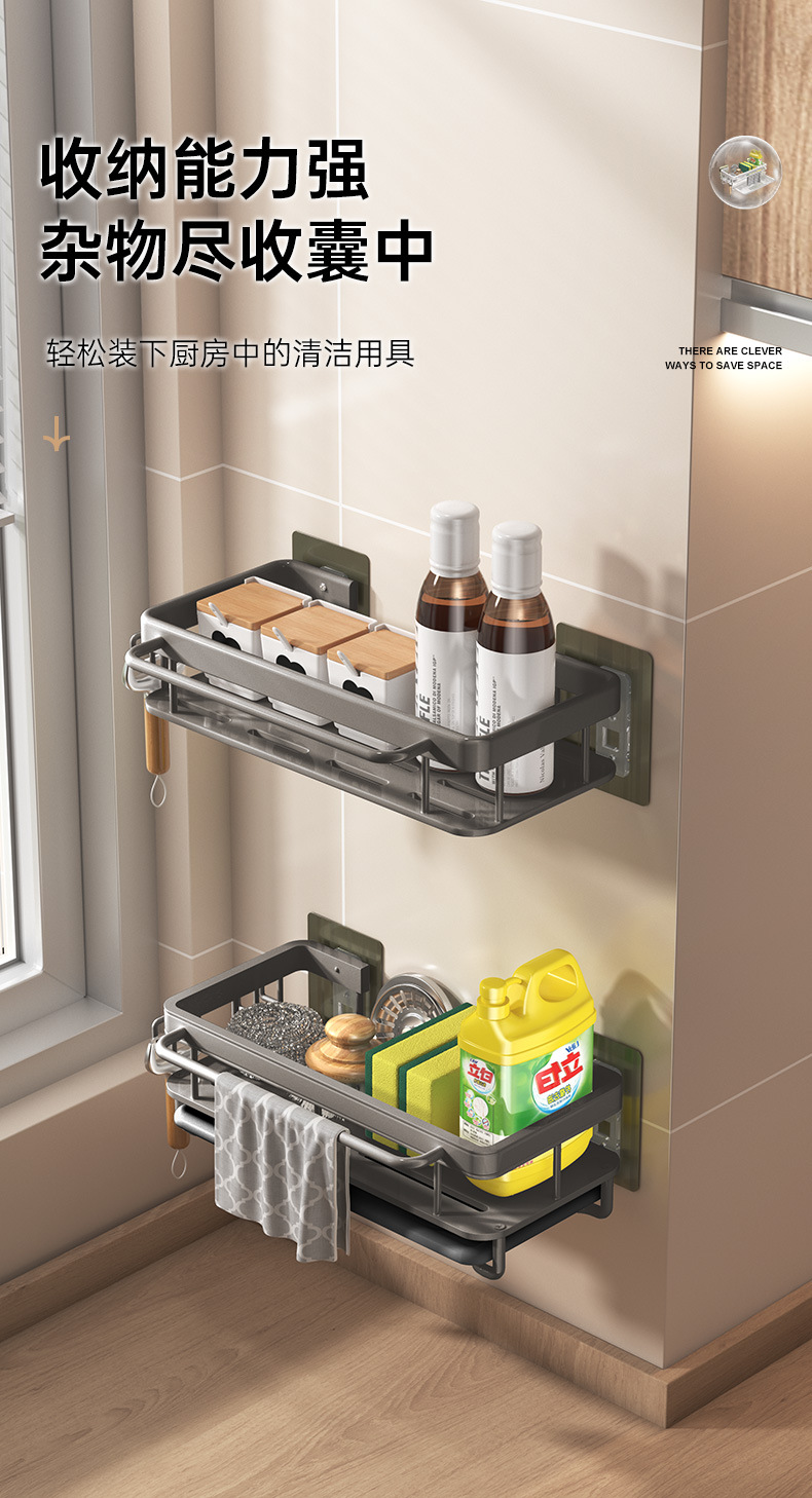 걸레걸이 주방 수납 선반 조미료 선반 가정용 싱크대 스펀지 배수 걸이 바구니 싱크대 용품 두꺼운 재질
