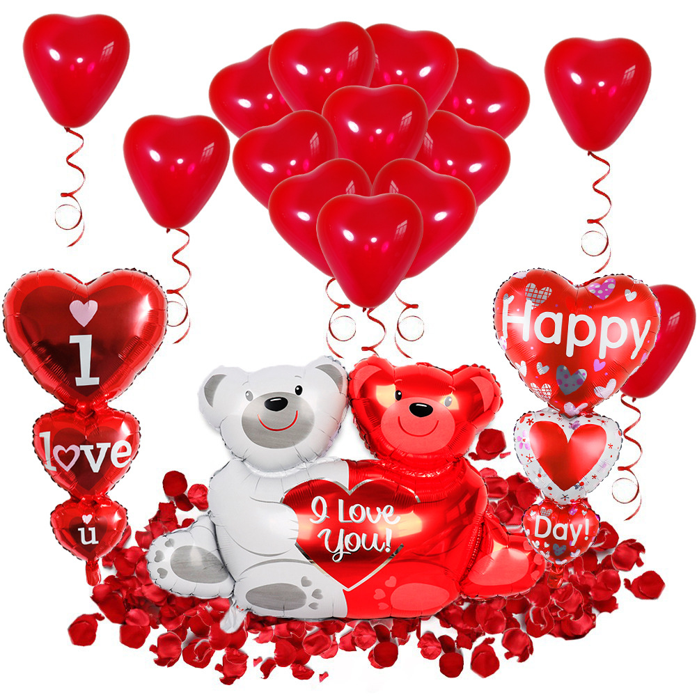 아마존 베어 하트 풍선 세트 나는 당신을 사랑합니다 발렌타인 데이 고백 제안 웨딩 룸 장식 알루미늄 풍선스토어 가기