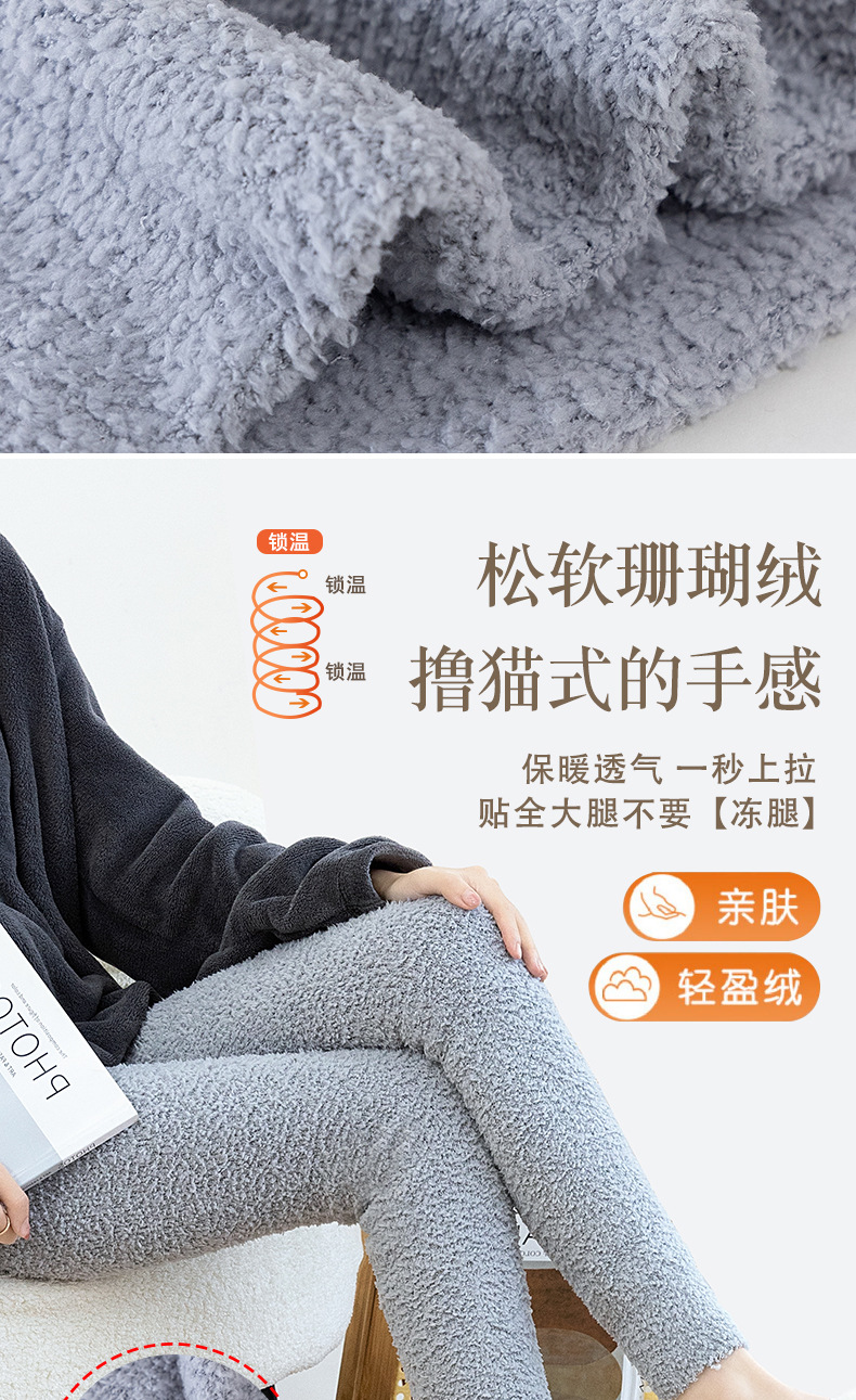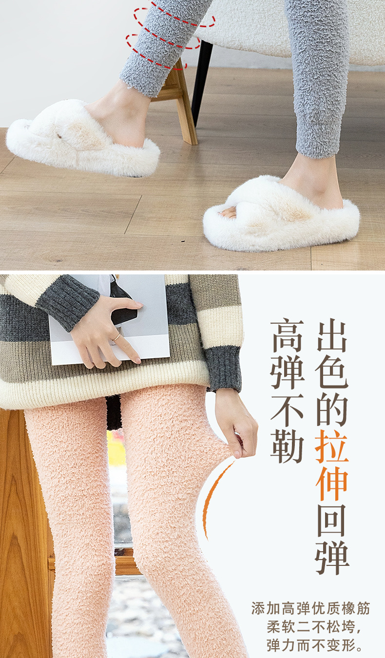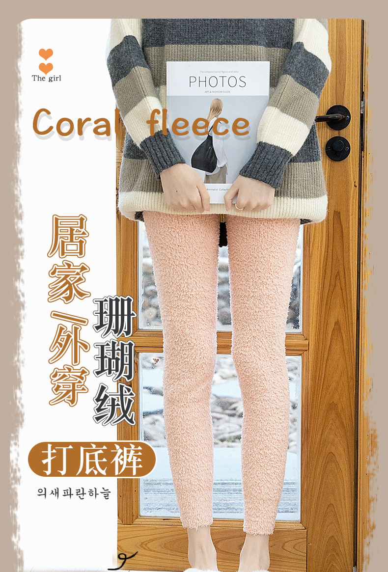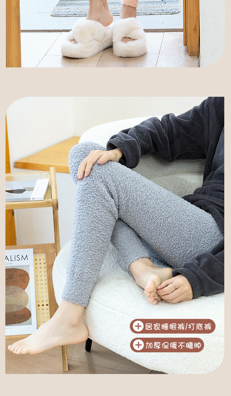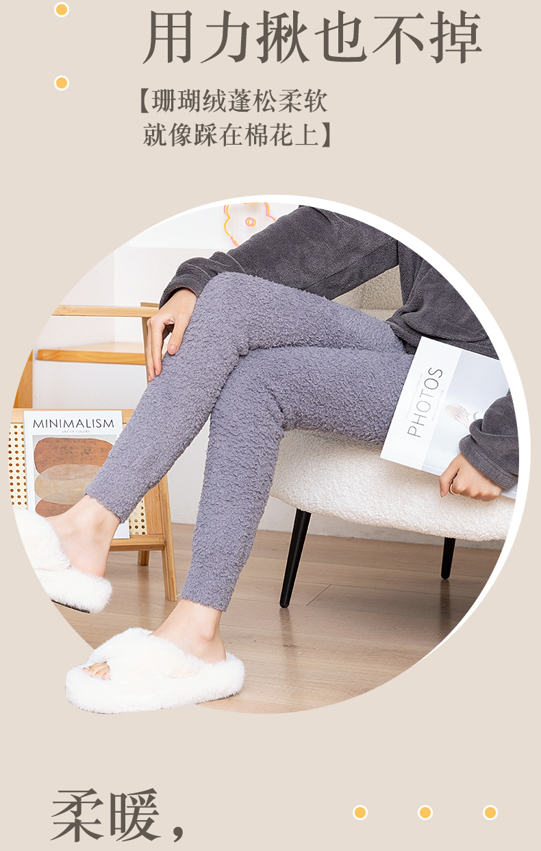 겨울용 도매 산호 벨벳 잠옷, 두꺼운 집에서 편안한 벨벳 따뜻한 싱글 바지, 임산부를 위한 느슨한 이음매 없는 레깅스스토어 가기