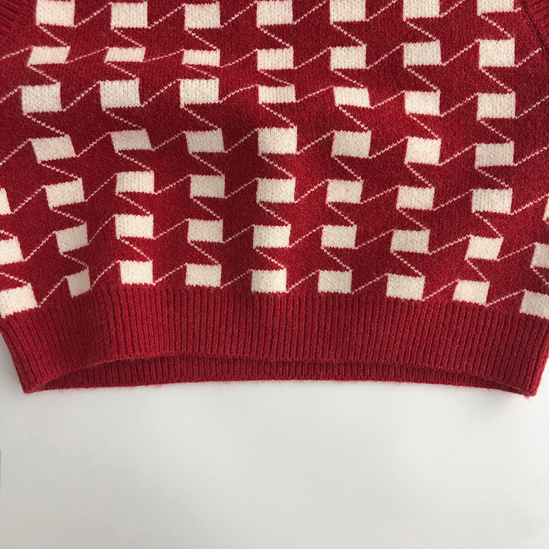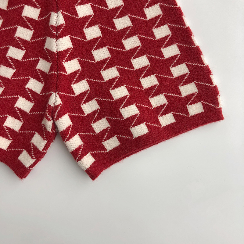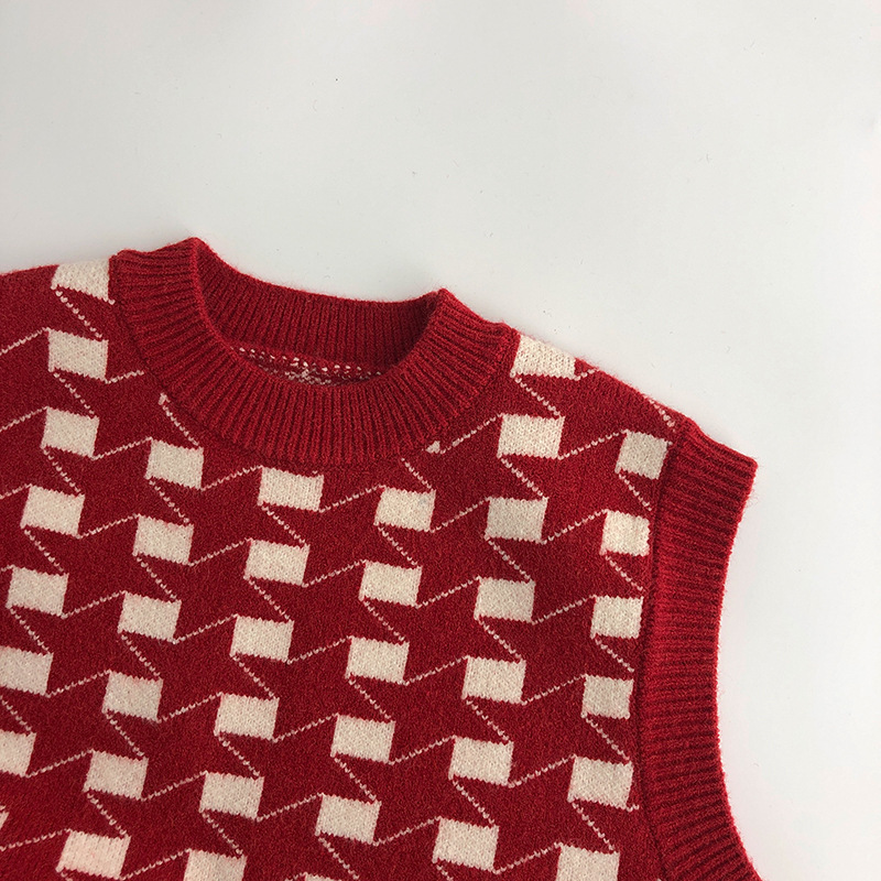 새해 세트 ~ 가을과 겨울 아동 스웨터 남자와 여자의 패션 빨간색 니트 인쇄 조끼 반바지 크리스마스 한국어 버전 Sen