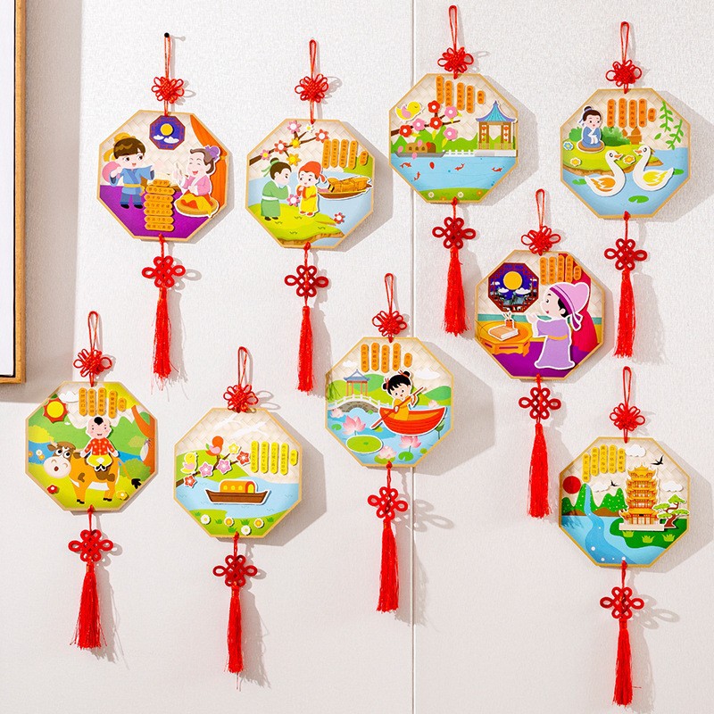 어린이 고대시 스티커 유치원 창조적 인 선물 수제 DIY 생산 당나라 시 매달려 장식 종이 스티커 재료 가방