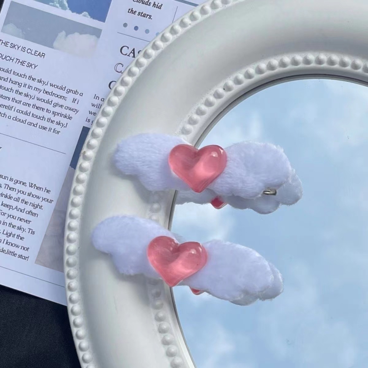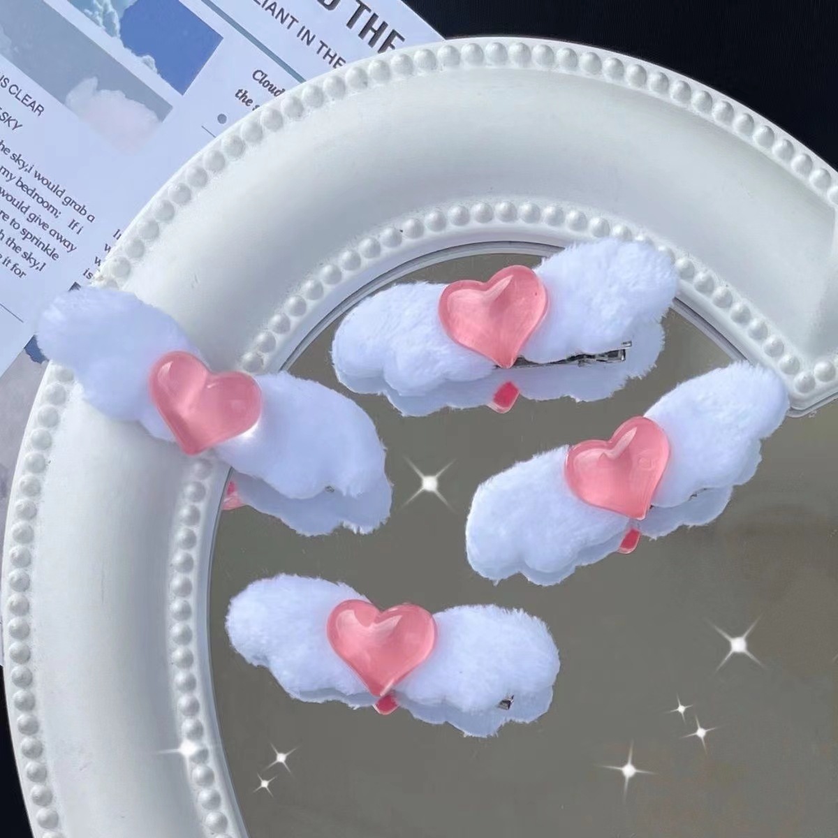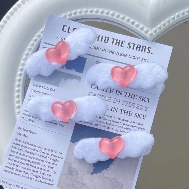 일본과 한국의 새로운 귀여운 사랑 머리핀 봉제 날개 머리핀 달콤한 소녀 사이드 클립 패션 모든 일치 달콤한 소녀 헤어 액세서리스토어 가기