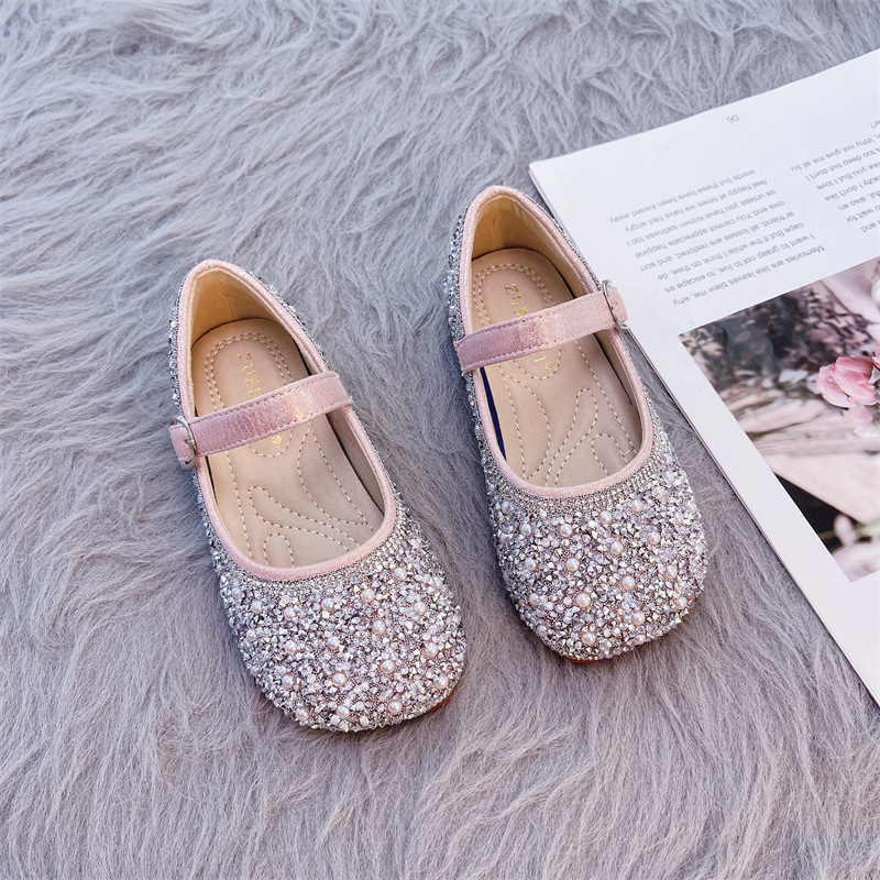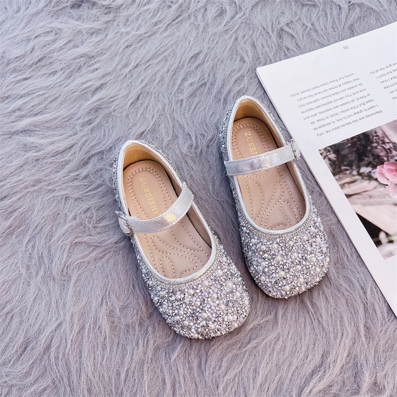 여자 신발 공주 신발 2023 겨울 새로운 어린이 크리스탈 신발 아기 소녀의 부드러운 바닥 신발 작은 가죽 신발 봄과 가을