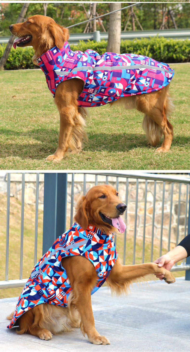 강아지 옷, 중대형견용 두꺼운 보온 면옷, 골든 리트리버, 래브라도, 애완동물 면조끼, 인스 스타일