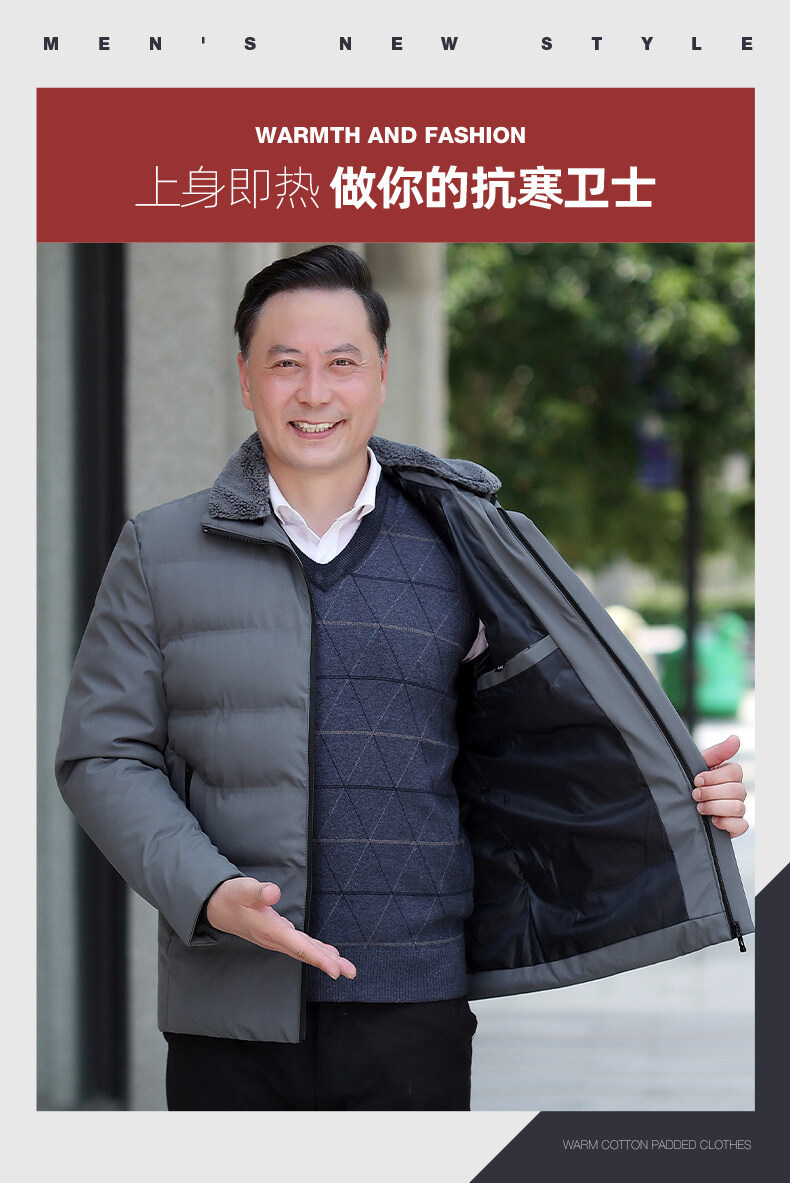 2022 새로운 면 패딩 남성용 면 패딩 재킷 따뜻한 방풍 패션 아빠와 할아버지가 두꺼운 중년 및 노인을위한 면 패딩 의류스토어 가기
