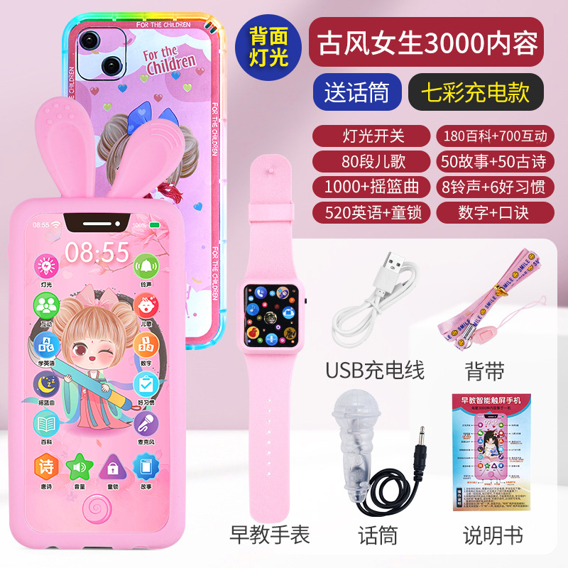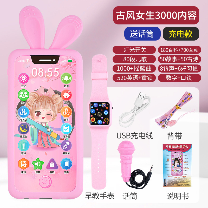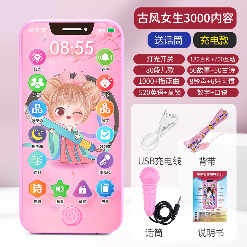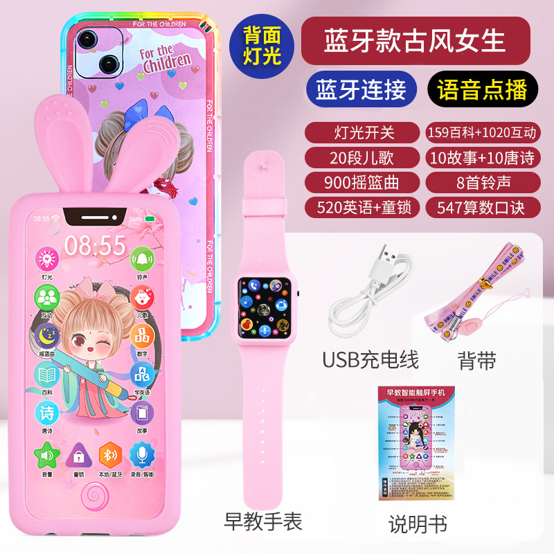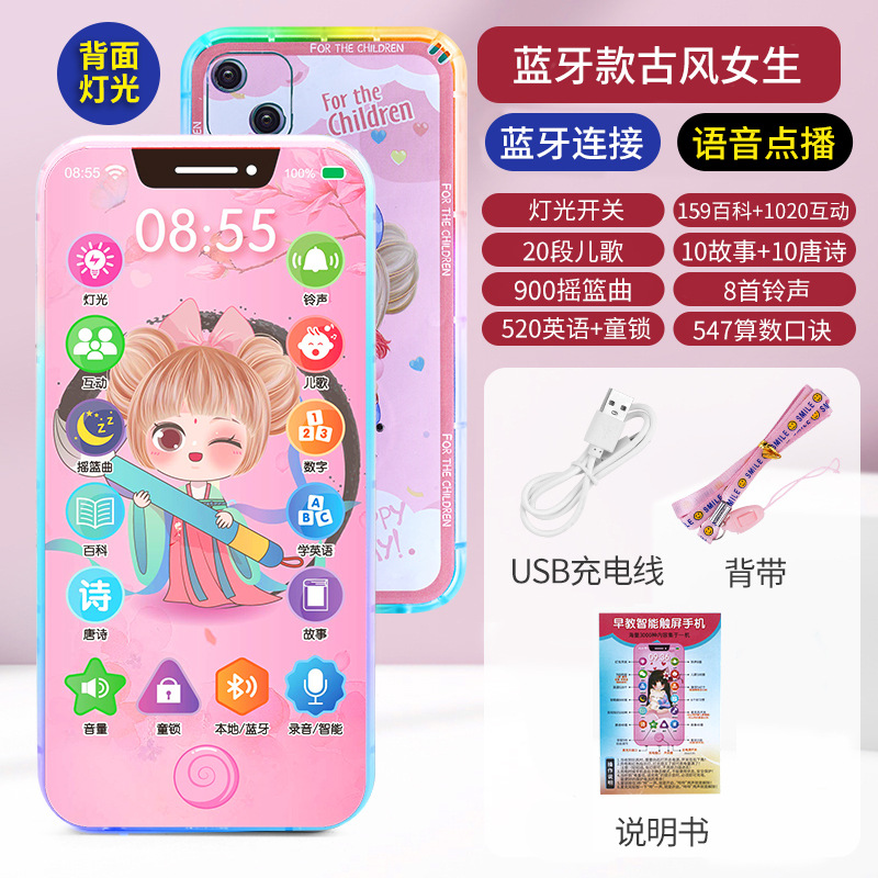 충전식 블루투스 터치 스크린 전화 아기 모델 시뮬레이션 장난감 어린이 교육 어린이 소년과 소녀 전화 물린
