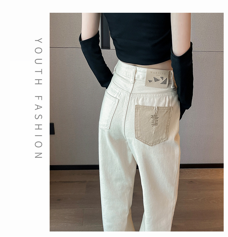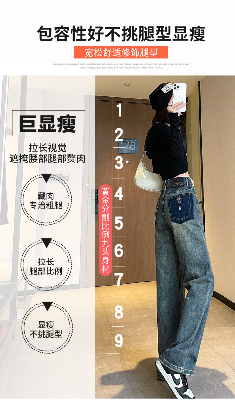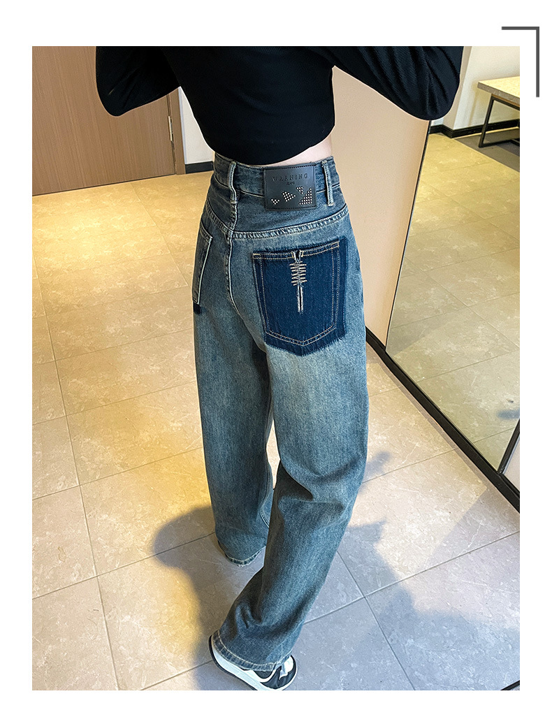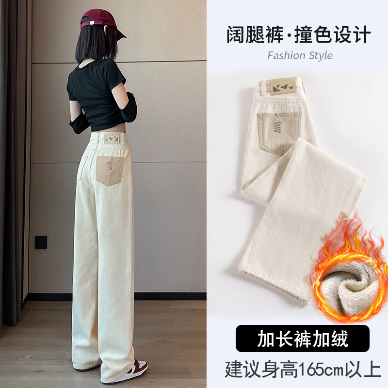 여성용 하이웨이스트 와이드 레그 캐주얼 청바지, 대비되는 색상, 복고풍 루즈 드레이프, 2024 가을 겨울 신상 슬리밍 바지스토어 가기