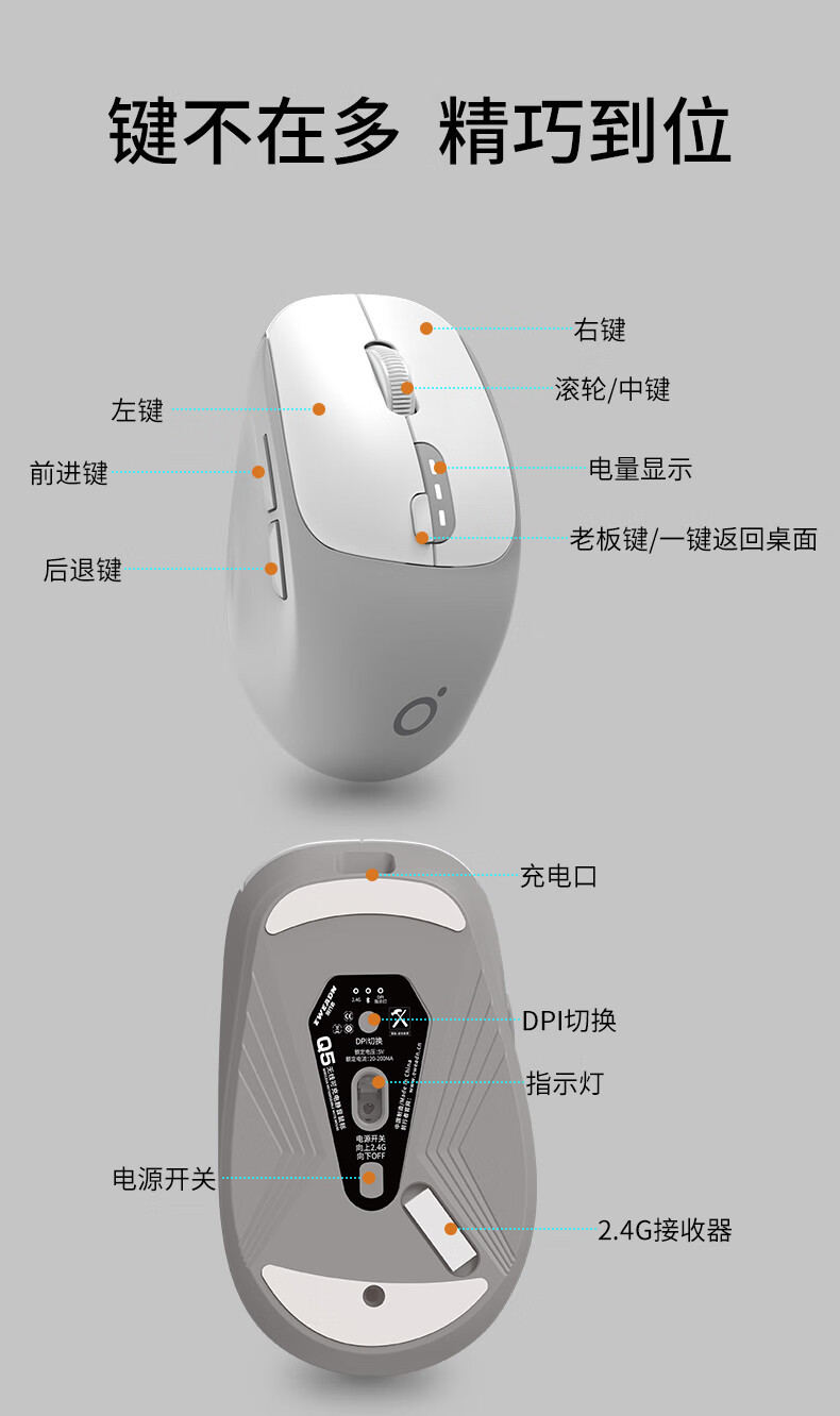 • Q5 트와일라잇 다크 그레이 [2.4g 무선 + 블루투스]]
