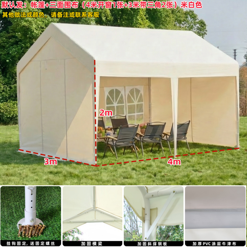 • 사방에 주변 천을 포함한 3 m × 6 m