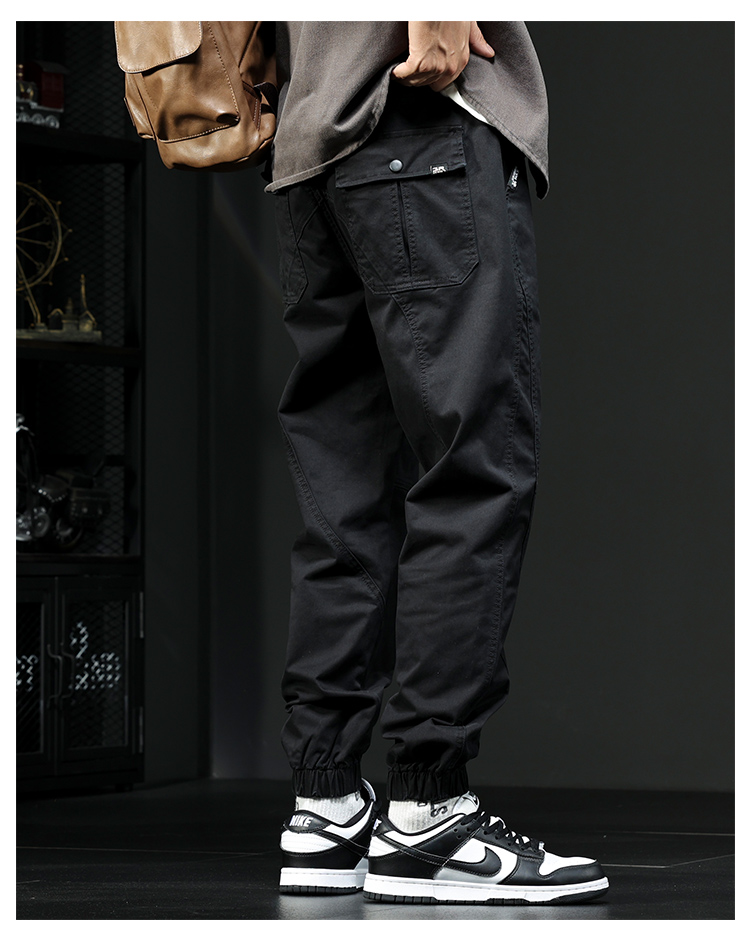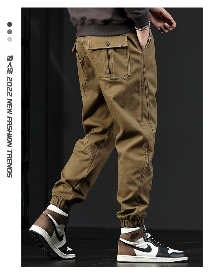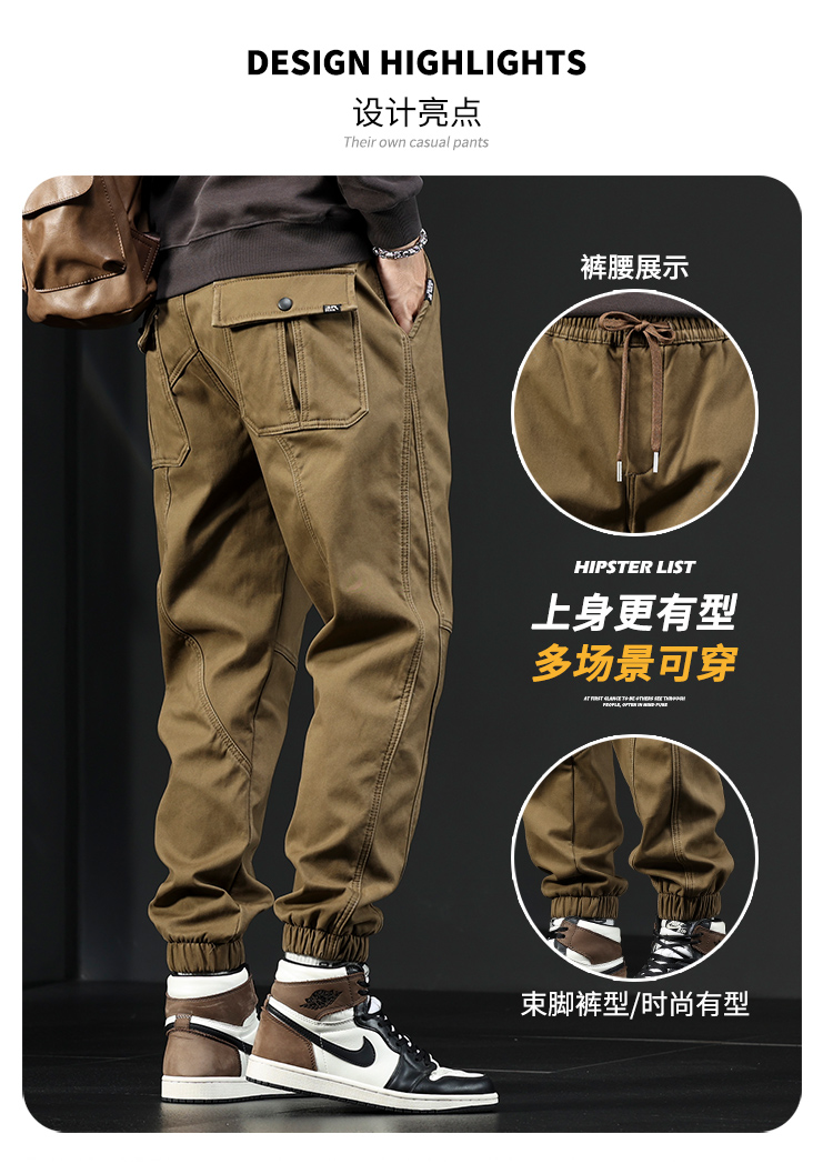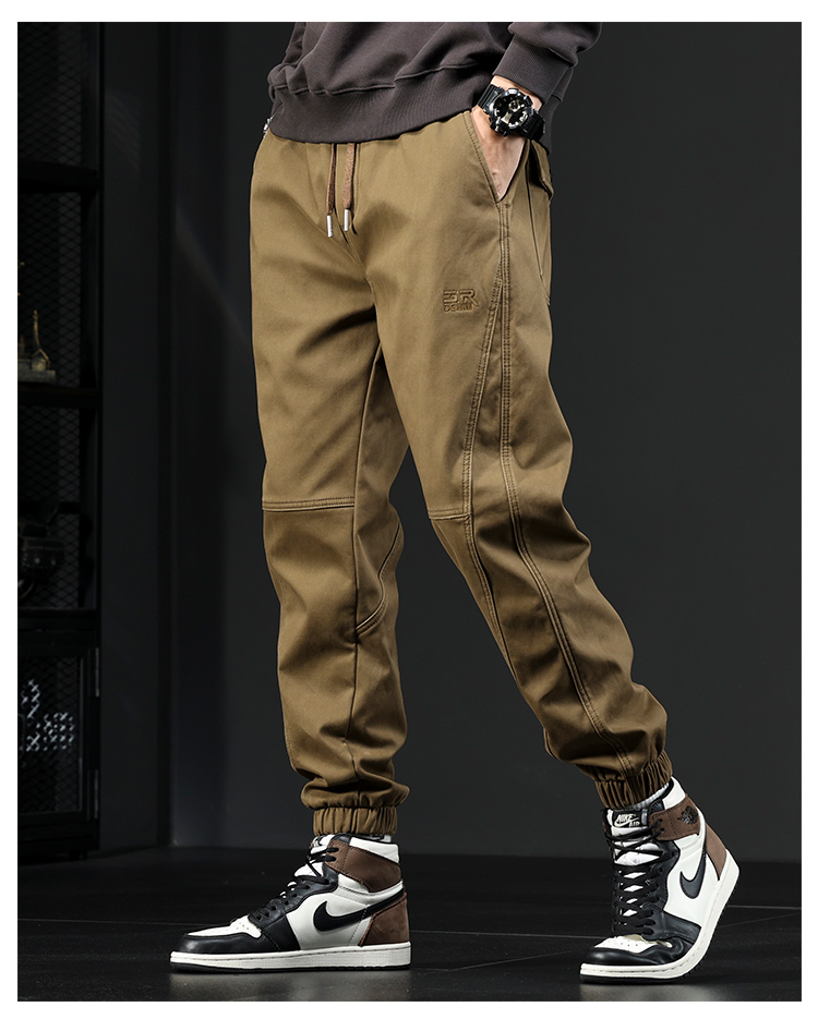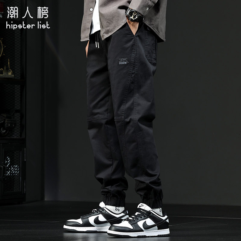 봄가을 남성용 워크웨어 팬츠, 아메리칸 레트로 스타일, 루즈핏, 발목 조임형 하렘 팬츠, 가을겨울용 두꺼운 캐주얼 긴바지