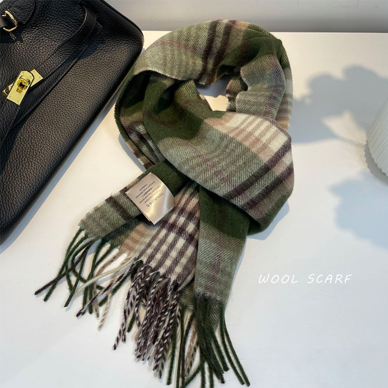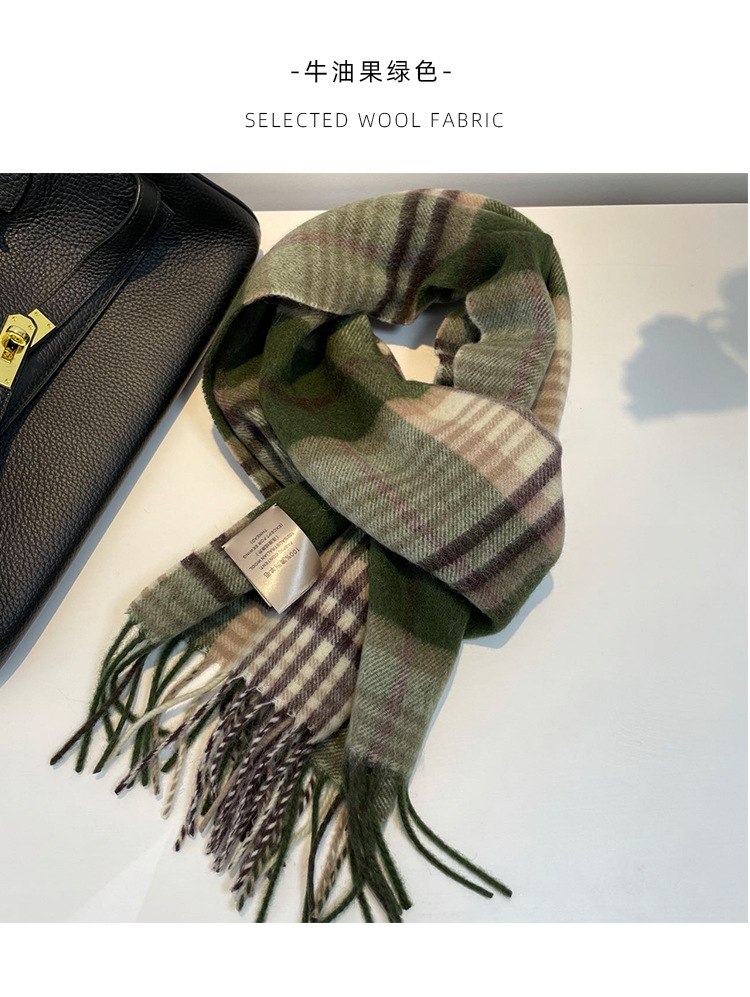 뉴트럴 스타일 호주산 울 아보카도 그린 순모 좁은 스카프 영국 스타일 다용도 겨울 따뜻한 패션 스카프 여성용스토어 가기