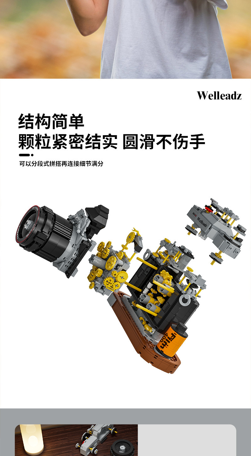 국경 간 레트로 시뮬레이션 카메라 난이도 크리에이티브 모델 빌딩 블록 조립 된 건물 블록 교육 기관 어린이 장난감