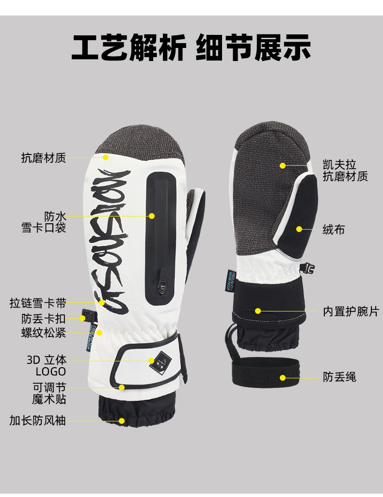 专业单双板内置护腕滑雪手套男刻滑闷子防水耐磨凯夫拉滑雪手套女