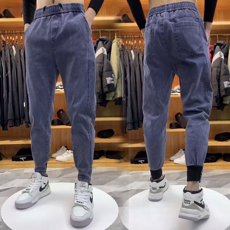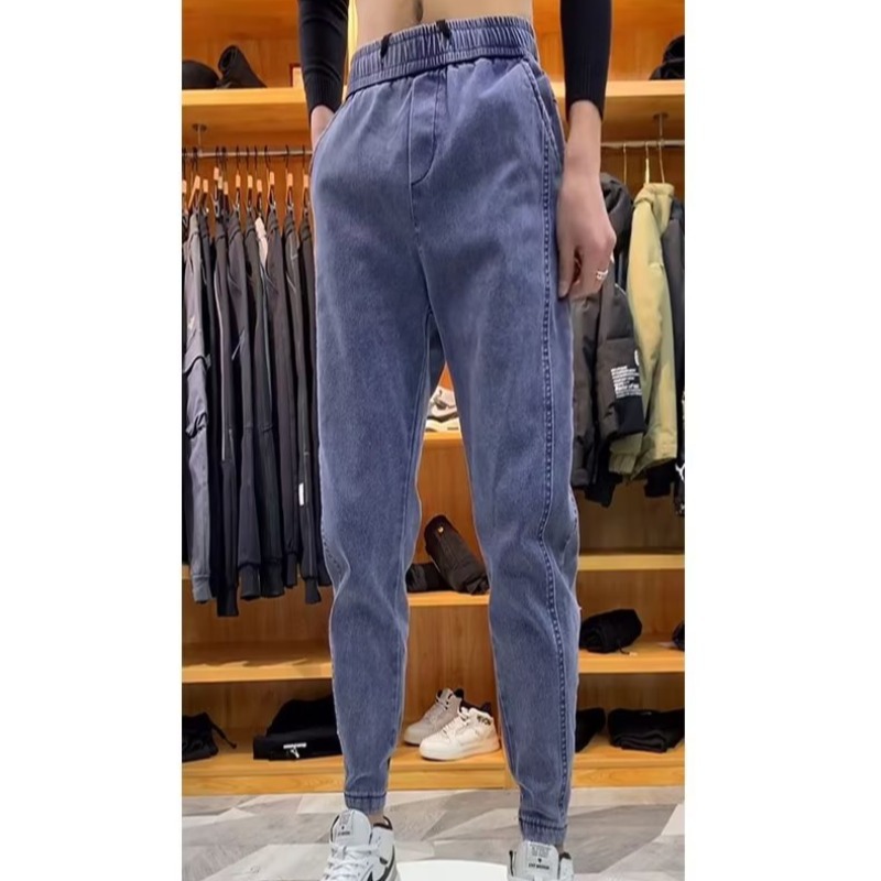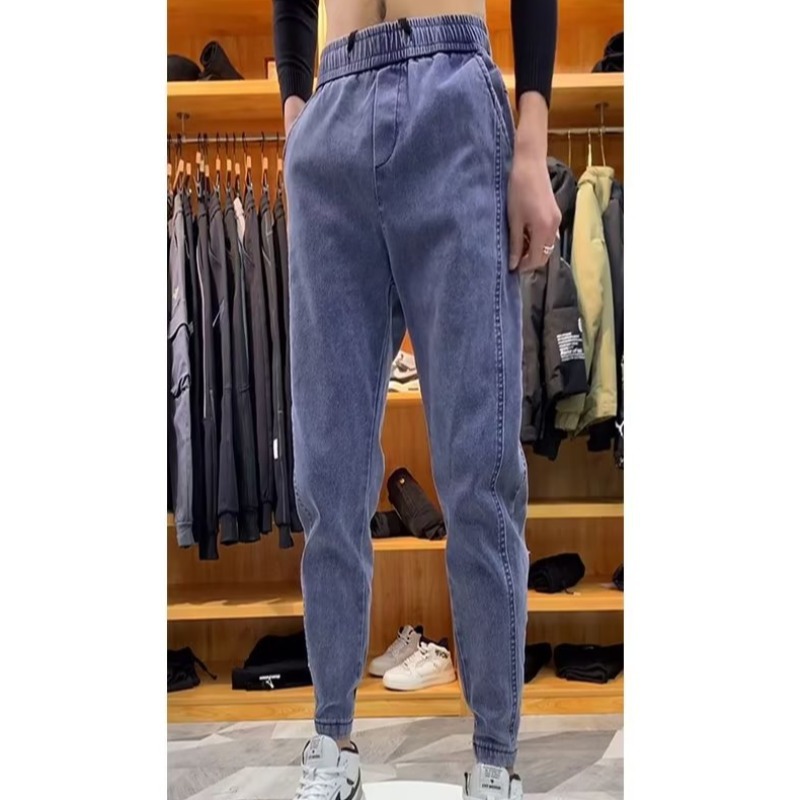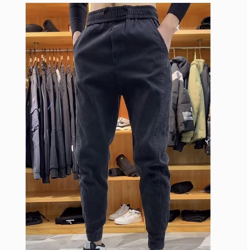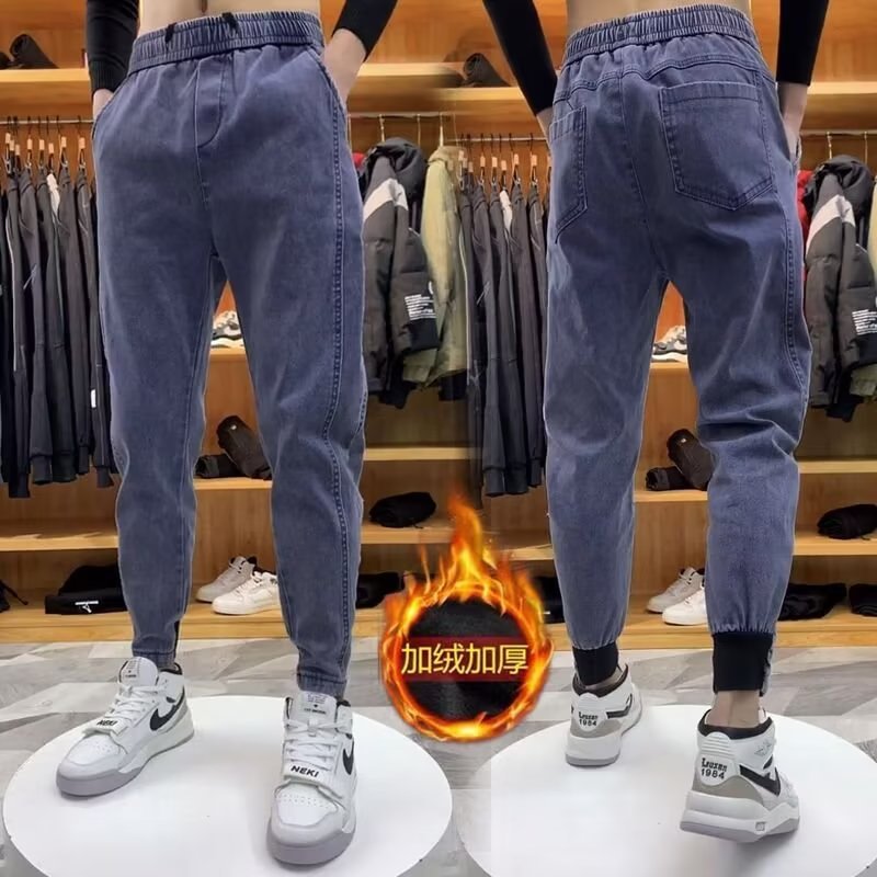 가을과 겨울 남자의 트렌디 한 캐주얼 기모 두꺼운 바위 바지 한국 스타일 슬림 핏 스키니 청바지 인터넷 연예인 바지스토어 가기