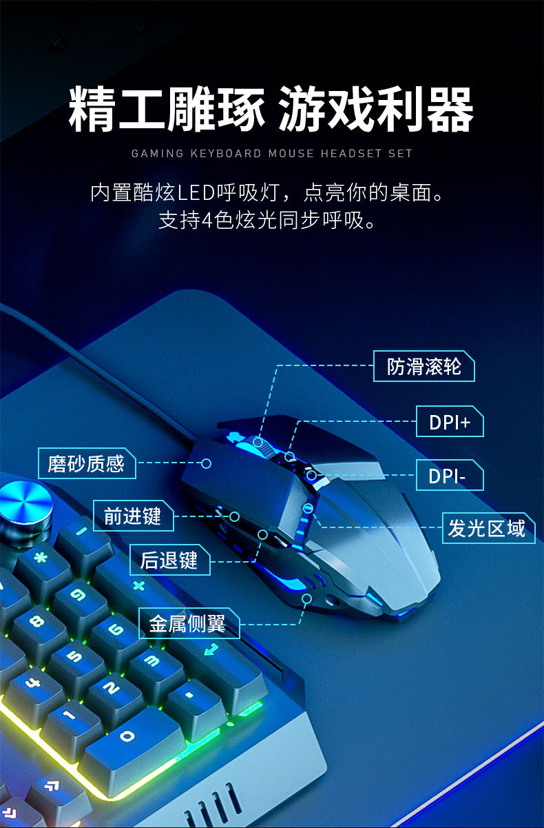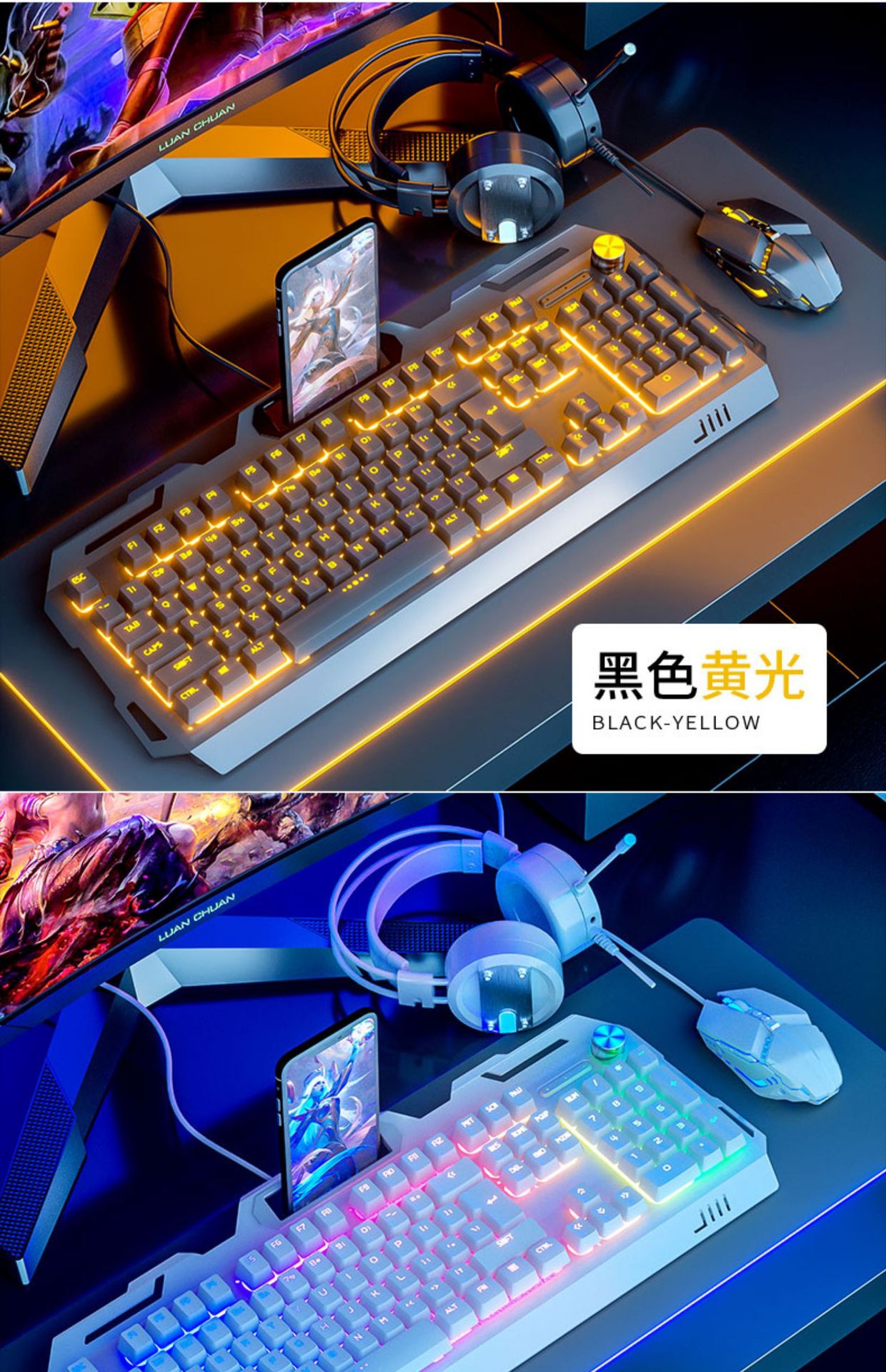 유선 발광 키보드 및 마우스 헤드셋 세트 경쟁 기계적 느낌 데스크탑 컴퓨터 노트북 펑크 키캡