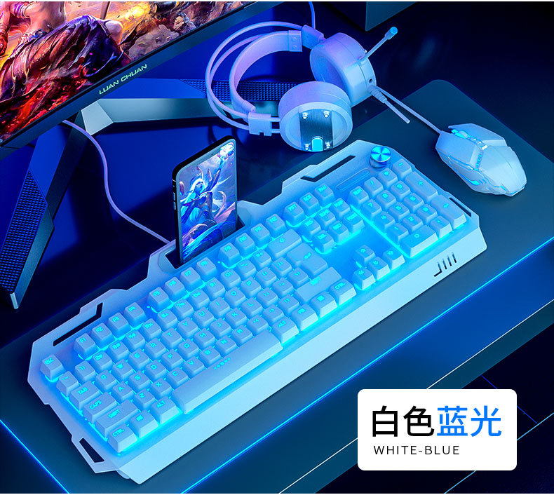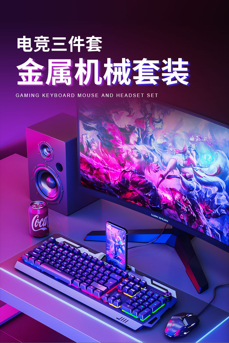 유선 발광 키보드 및 마우스 헤드셋 세트 경쟁 기계적 느낌 데스크탑 컴퓨터 노트북 펑크 키캡스토어 가기