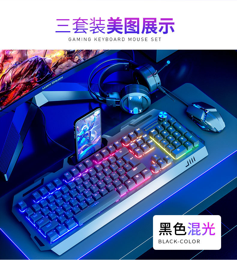• YK200-black 혼합 조명 [키보드 및 마우스 헤드셋 3 피스 세트]]